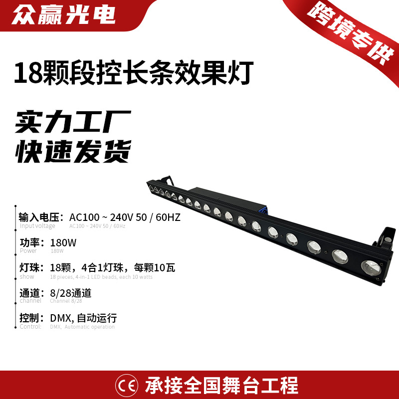 무대 조명 18개 세그먼트 제어 롱 스트립 효과 조명 공연 콘서트 파티 바 노래방 분위기 조명