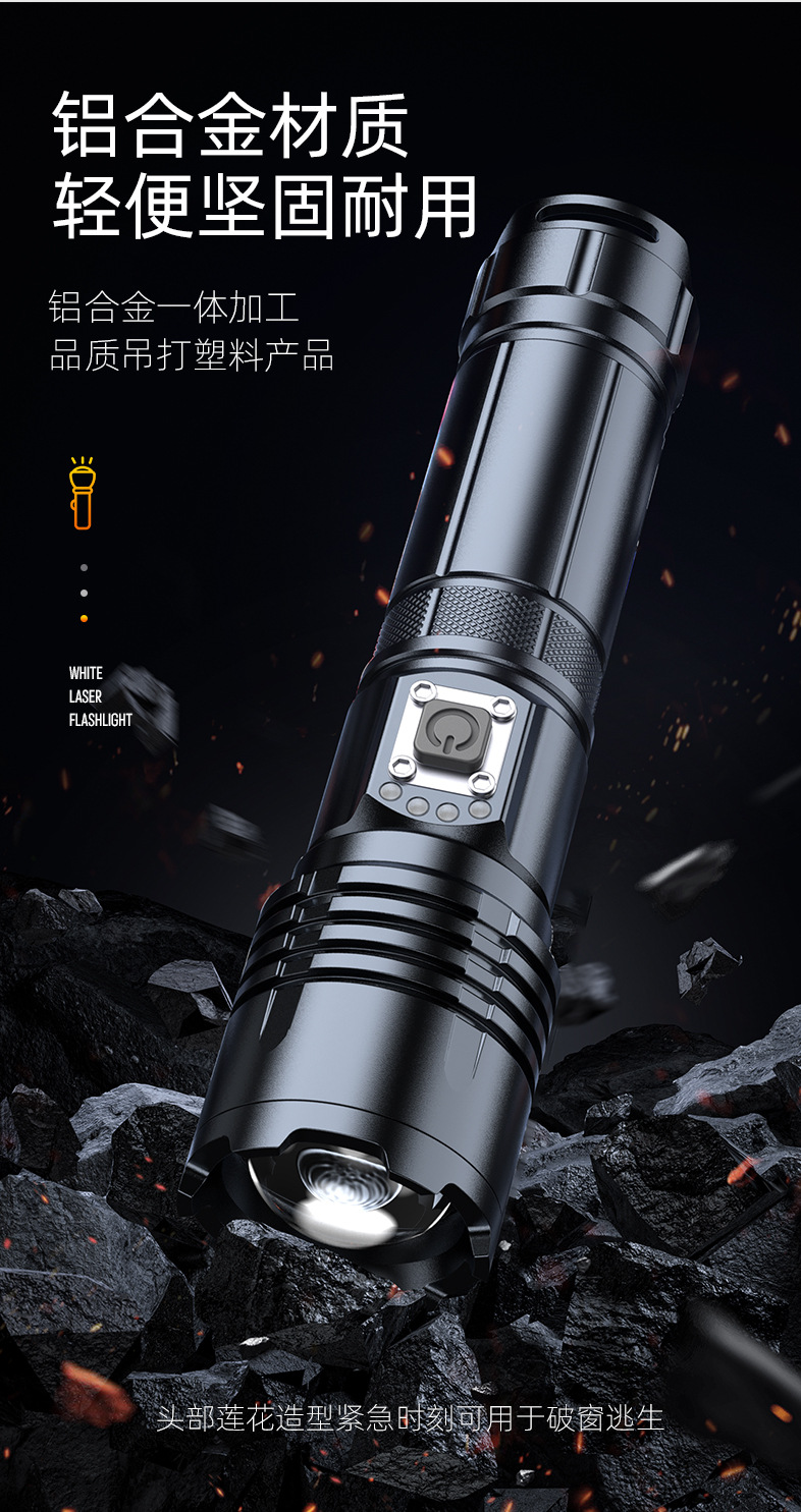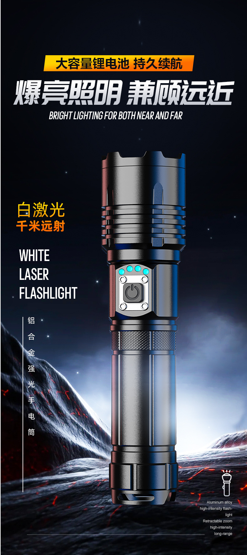 손전등 강한 빛 레이저 총 충전 휴대용 긴 내구성 슈퍼 밝은 비상 화재 긴 촬영 손전등 야외 스페셜