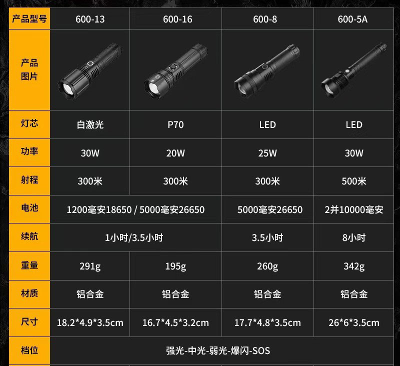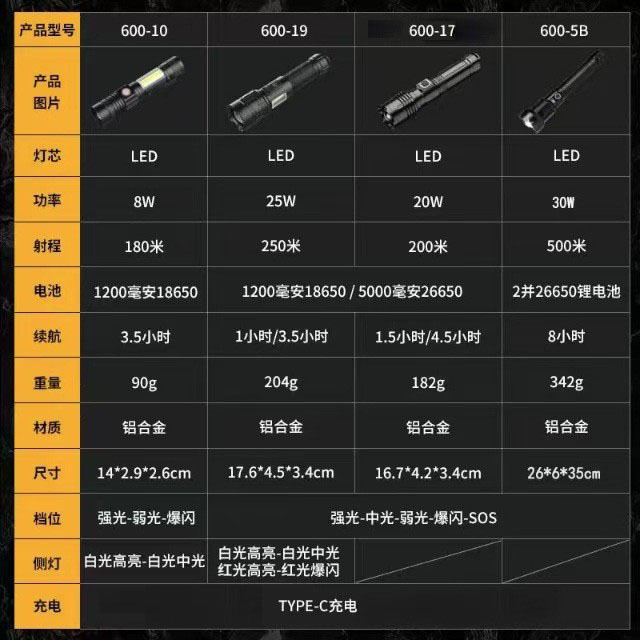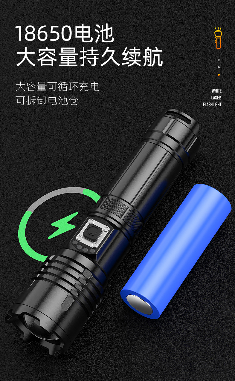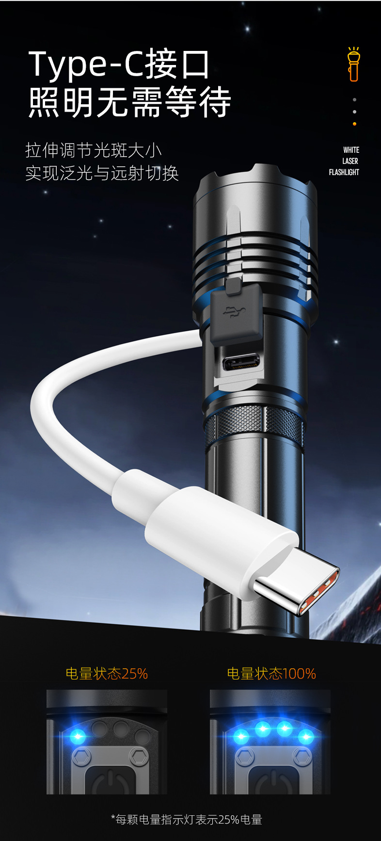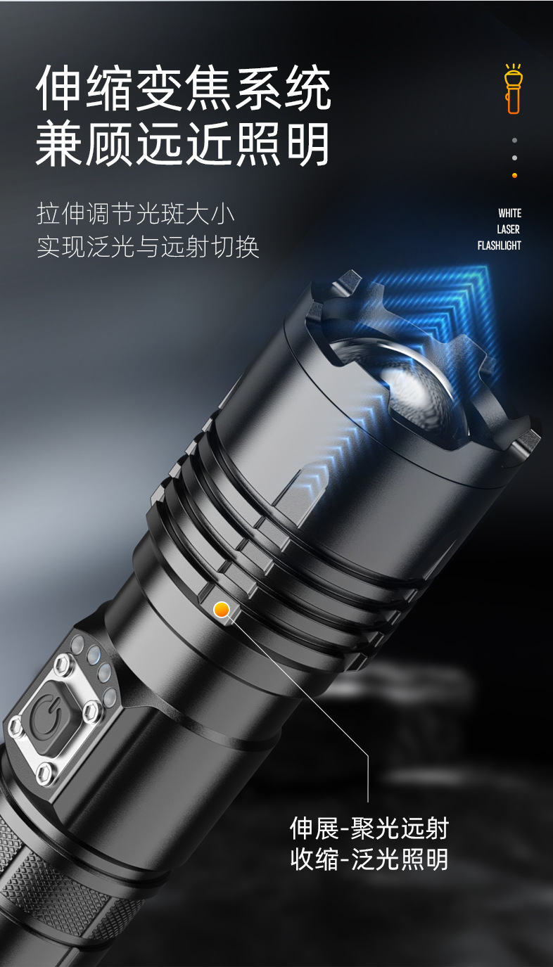 손전등 강한 빛 레이저 총 충전 휴대용 긴 내구성 슈퍼 밝은 비상 화재 긴 촬영 손전등 야외 스페셜스토어 가기