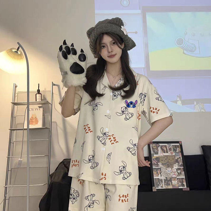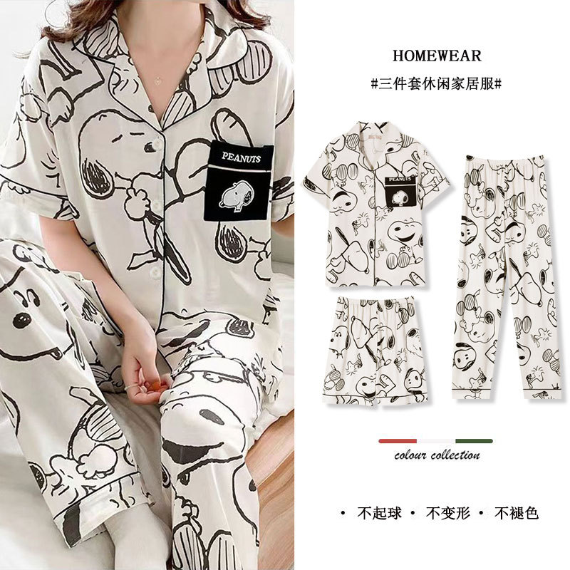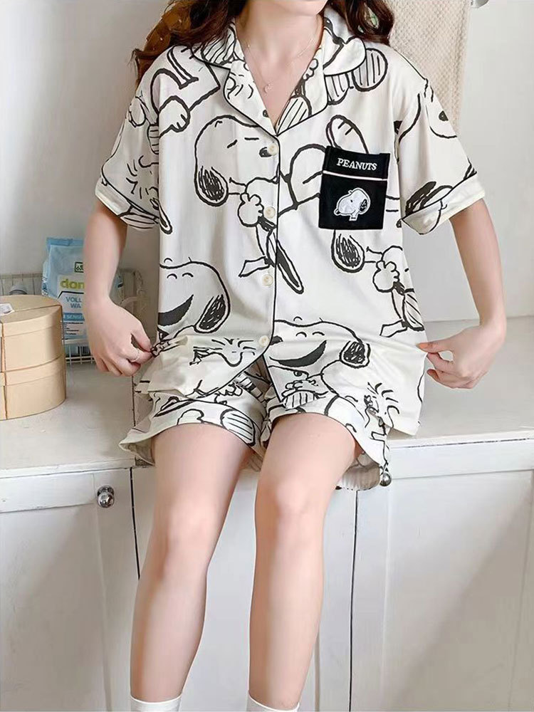 봄과 가을 커플 파자마 짧은 소매 스누피 남자와 여자의 귀여운 플러스 사이즈 여자의 가을 겨울 홈 의류 세트스토어 가기