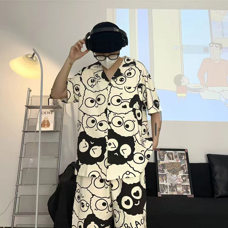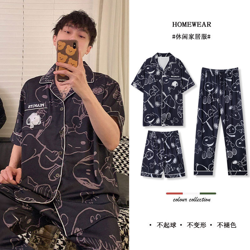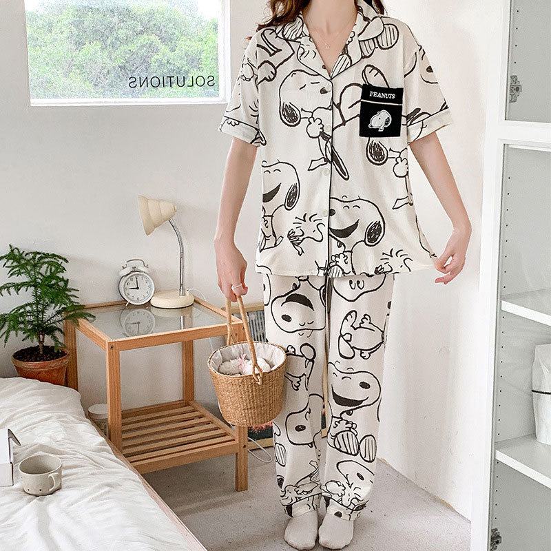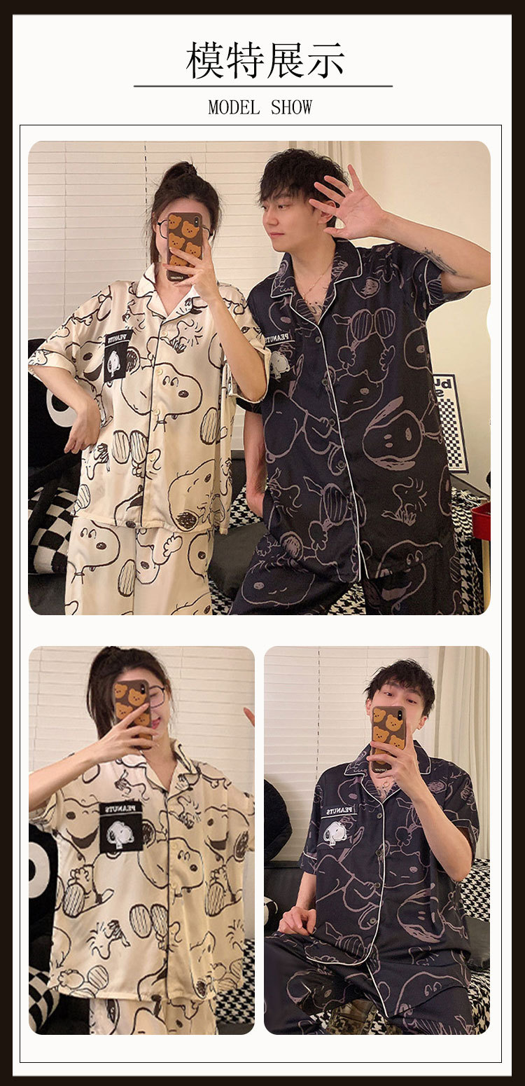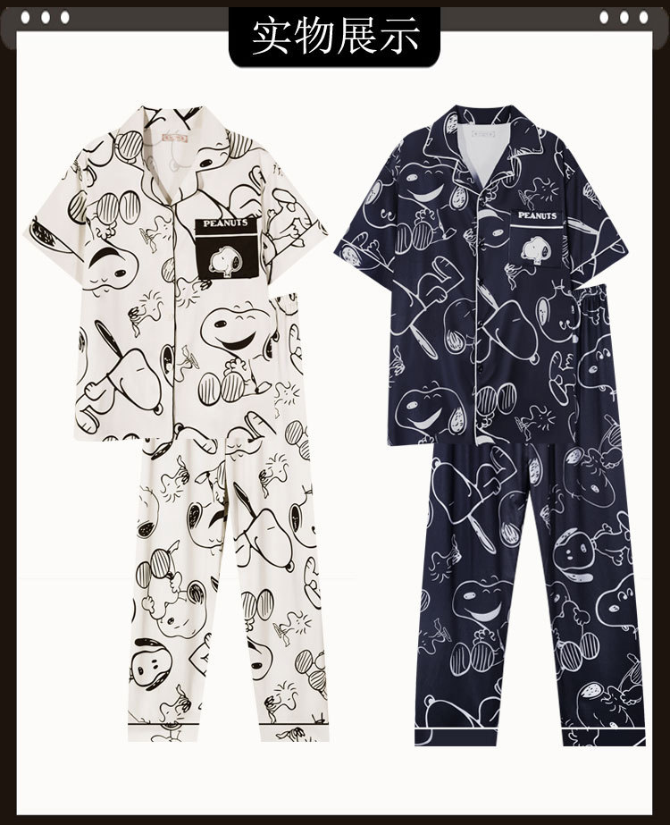 봄과 가을 커플 파자마 짧은 소매 스누피 남자와 여자의 귀여운 플러스 사이즈 여자의 가을 겨울 홈 의류 세트