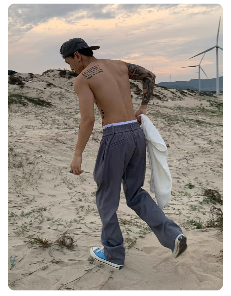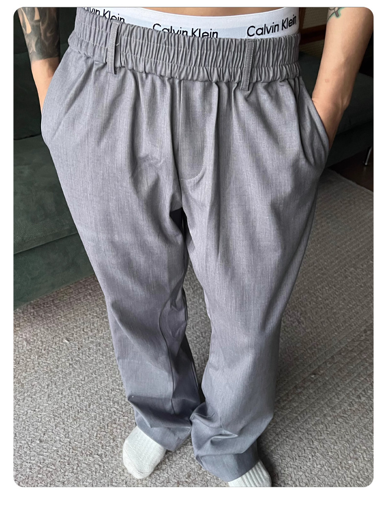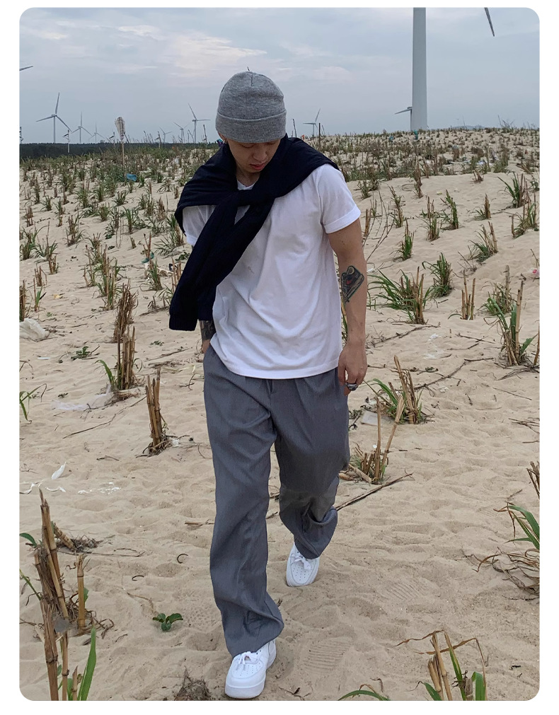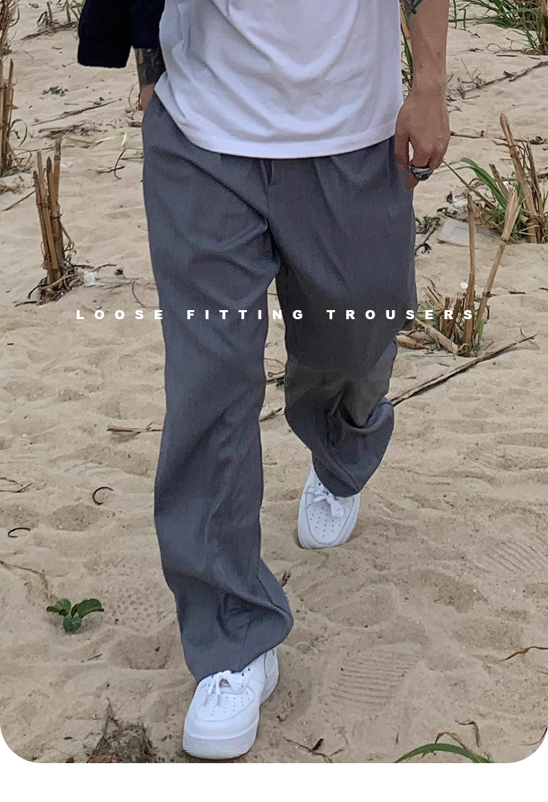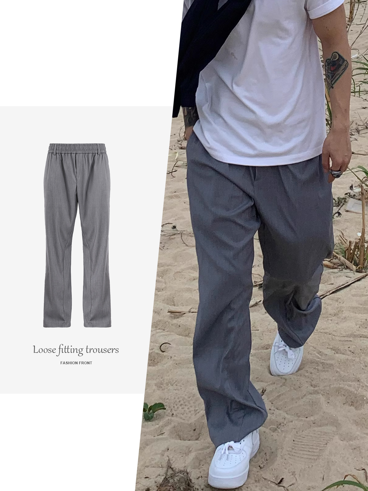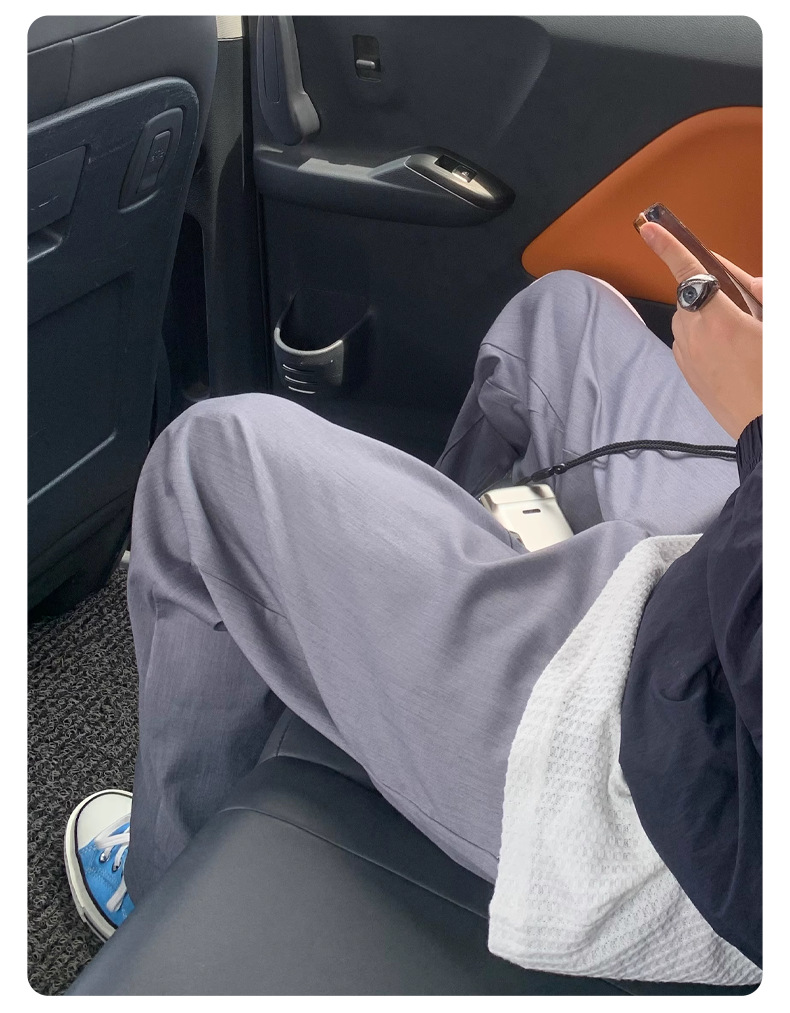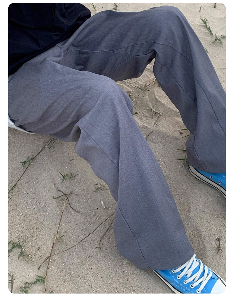 미국 스타일의 기본 통근 바지 바느질 컷 여름 쿨 데프 솔리드 컬러 느슨한 마이크로 리어 얇은 바지스토어 가기