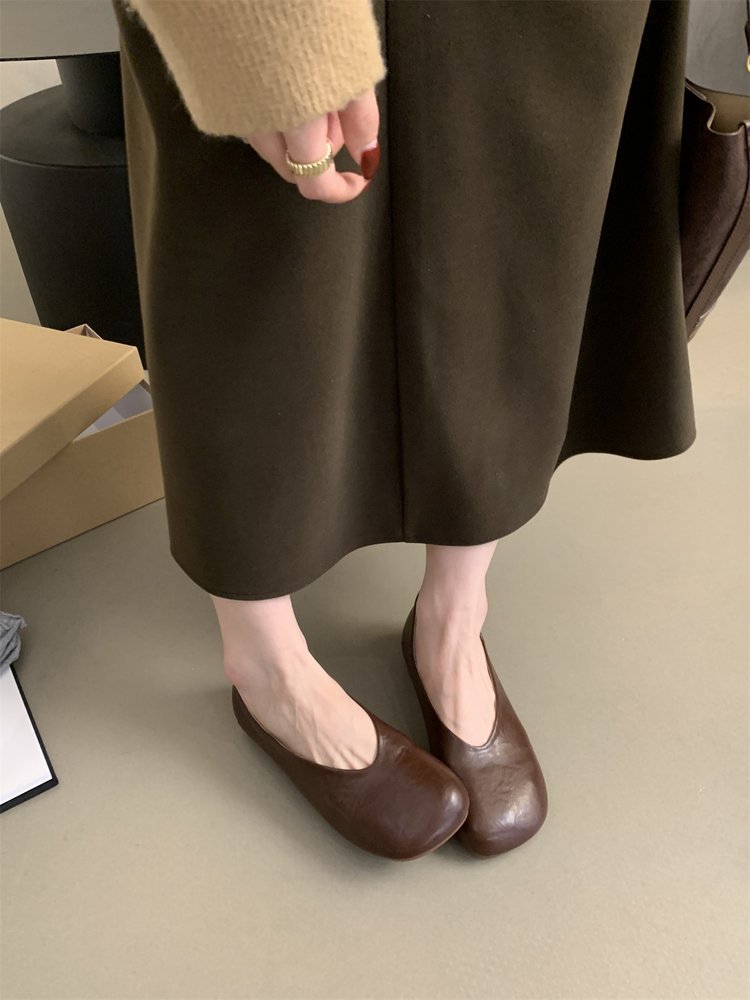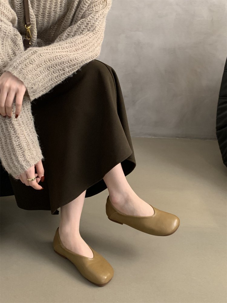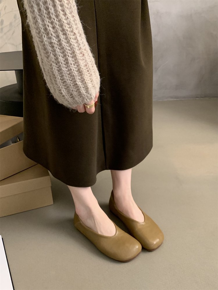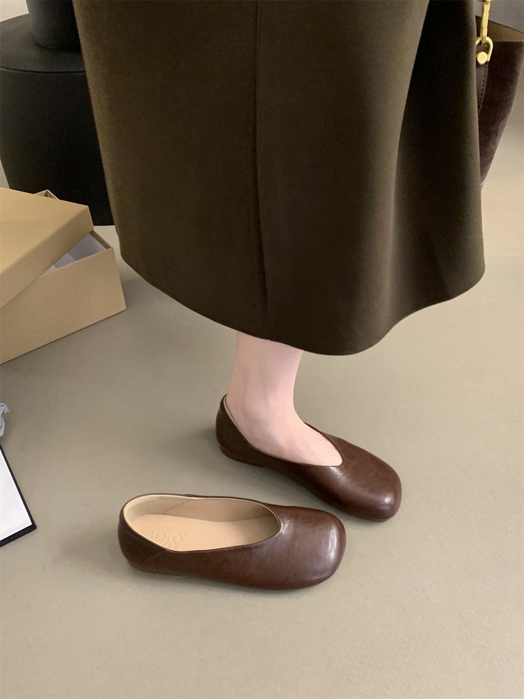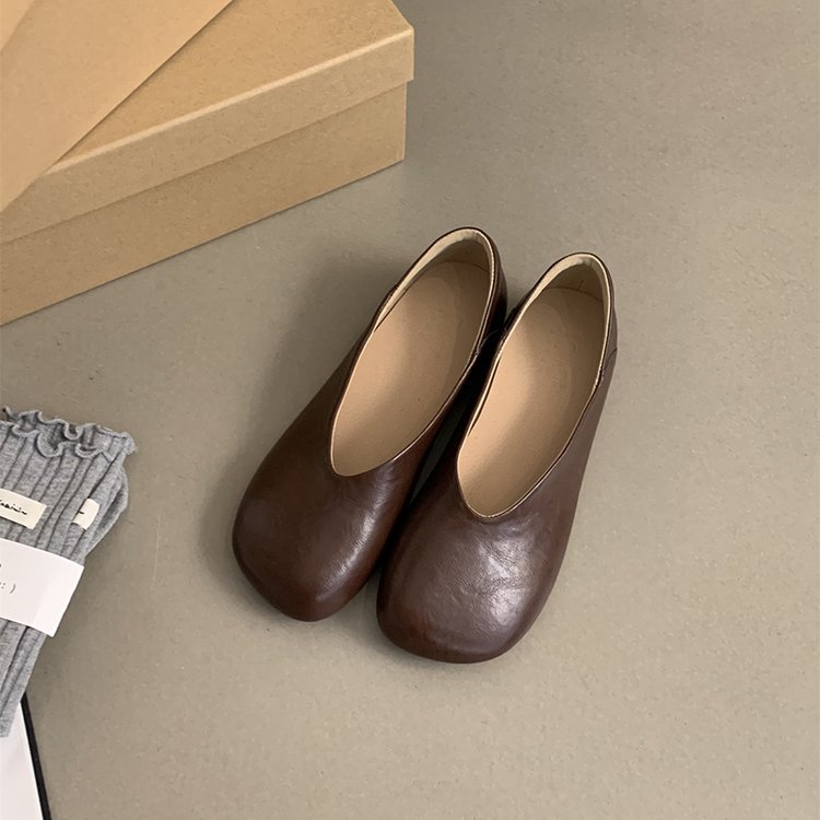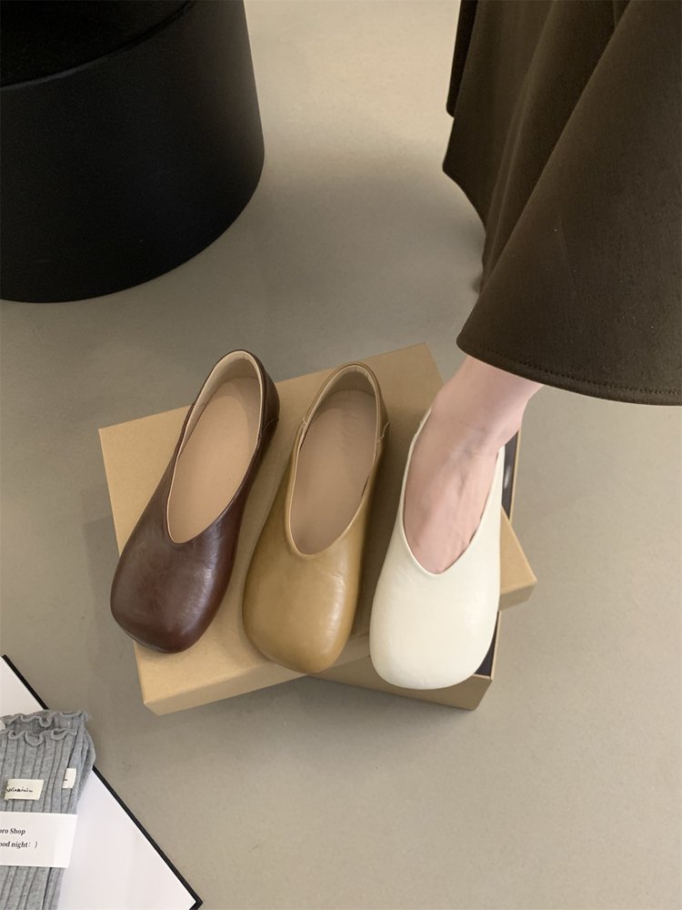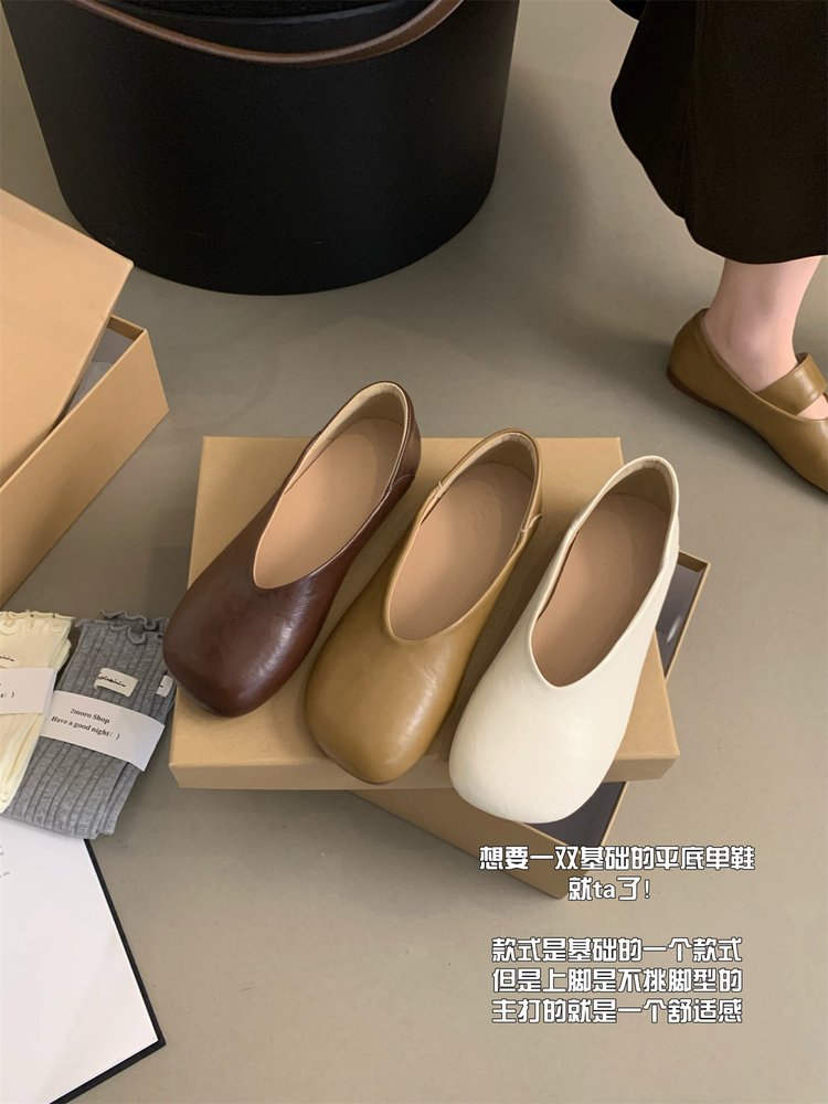 소프트 솔 신발 여성 플랫 신발 2024 새로운 올매치 얕은 입 슬립 온 여성 신발 프렌치 빈티지 밀크 신발스토어 가기