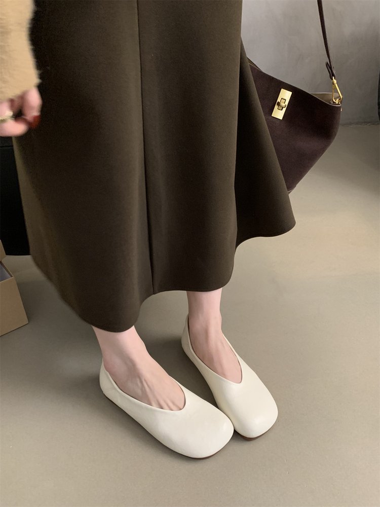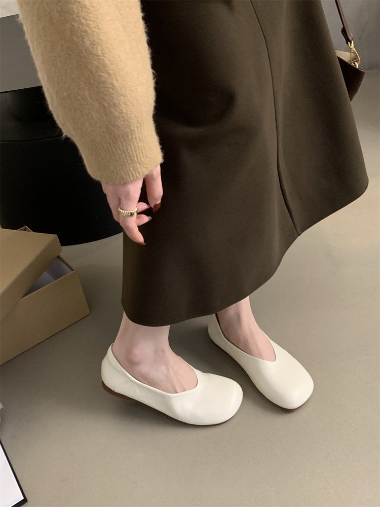 소프트 솔 신발 여성 플랫 신발 2024 새로운 올매치 얕은 입 슬립 온 여성 신발 프렌치 빈티지 밀크 신발