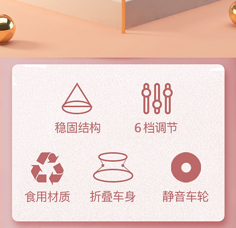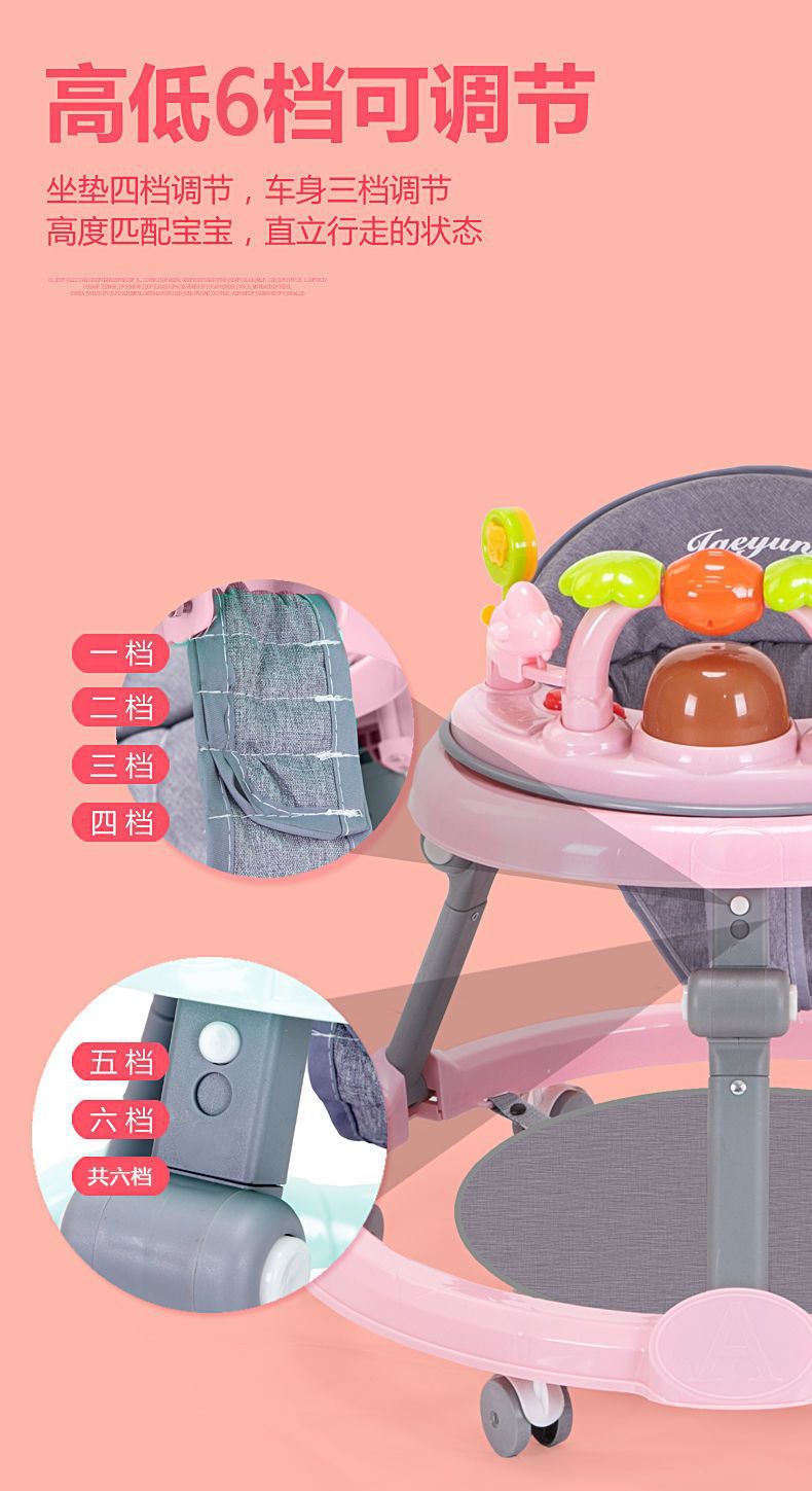 • 樱花粉-升级版6档调节-秒变餐桌-静音轮-玩具音乐-脚垫⚑