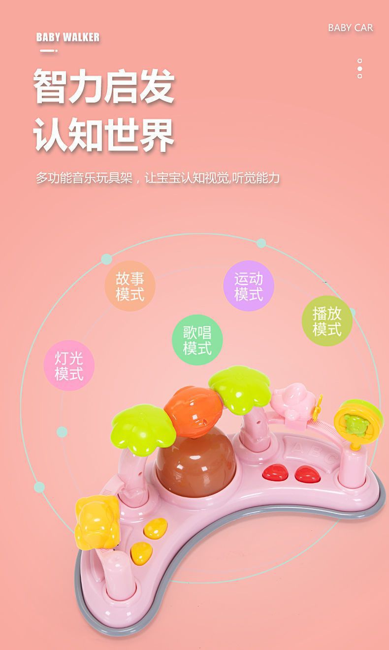 • 樱花粉-升级版6档调节-秒变餐桌-普通轮-玩具音乐-脚垫⚑