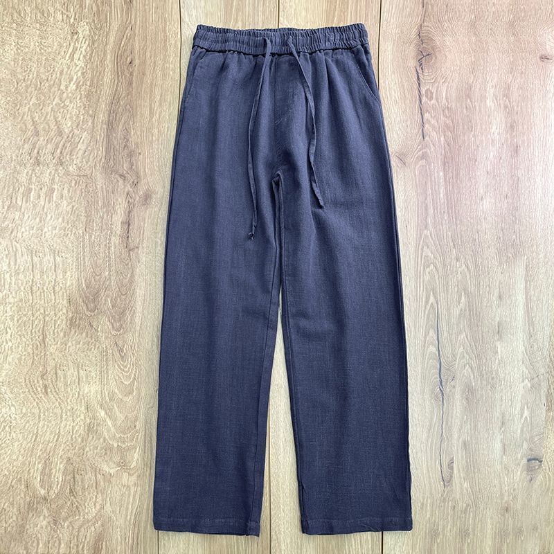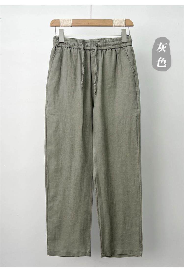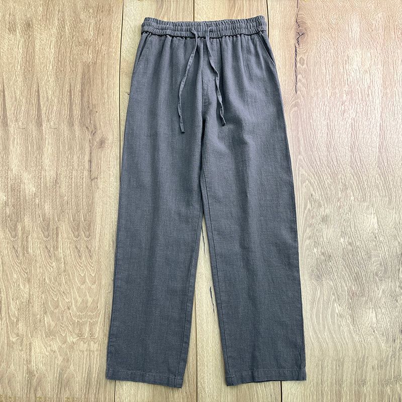 하이 엔드 퓨어 리넨 남성용 바지 여름 리넨 바지 남성용 코튼 및 리넨 바지 느슨한 와이드 레그 스트레이트 캐주얼 바지 봄과 가을스토어 가기