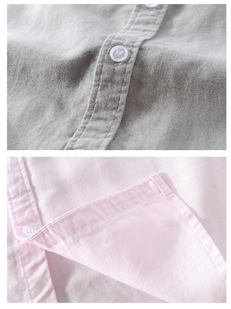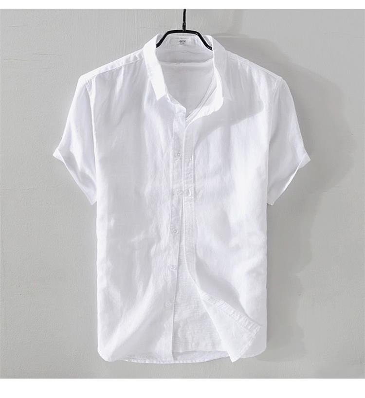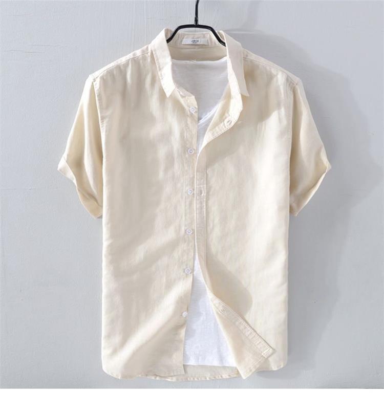 일본식 간단한 캐주얼 스퀘어 칼라 리넨 반팔 셔츠 남성용 얇은 통기성 코튼 리넨 셔츠 슬림핏 솔리드 컬러 반소매 셔츠