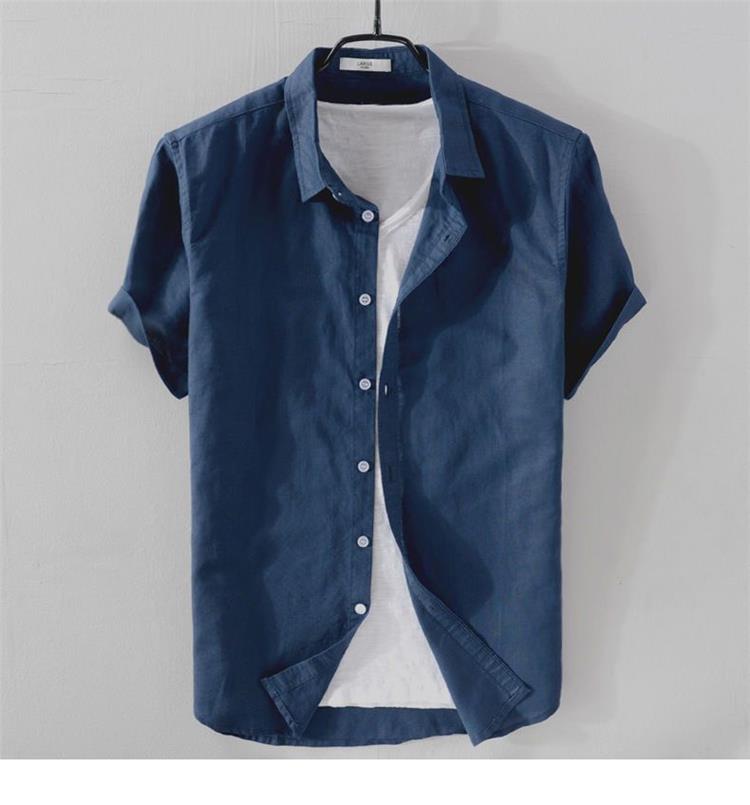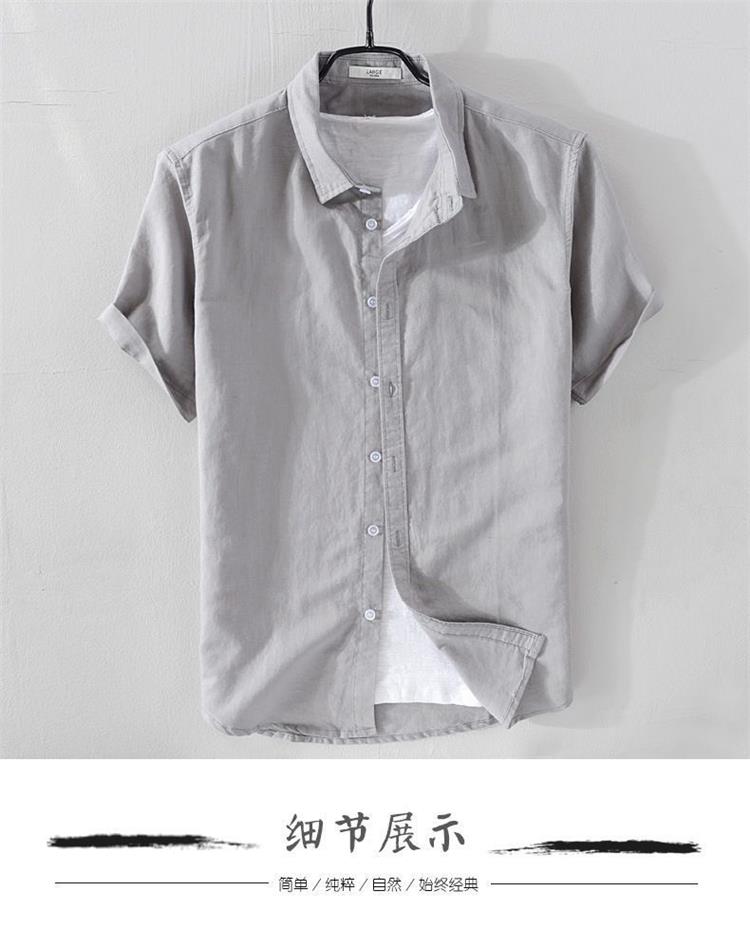 일본식 간단한 캐주얼 스퀘어 칼라 리넨 반팔 셔츠 남성용 얇은 통기성 코튼 리넨 셔츠 슬림핏 솔리드 컬러 반소매 셔츠스토어 가기