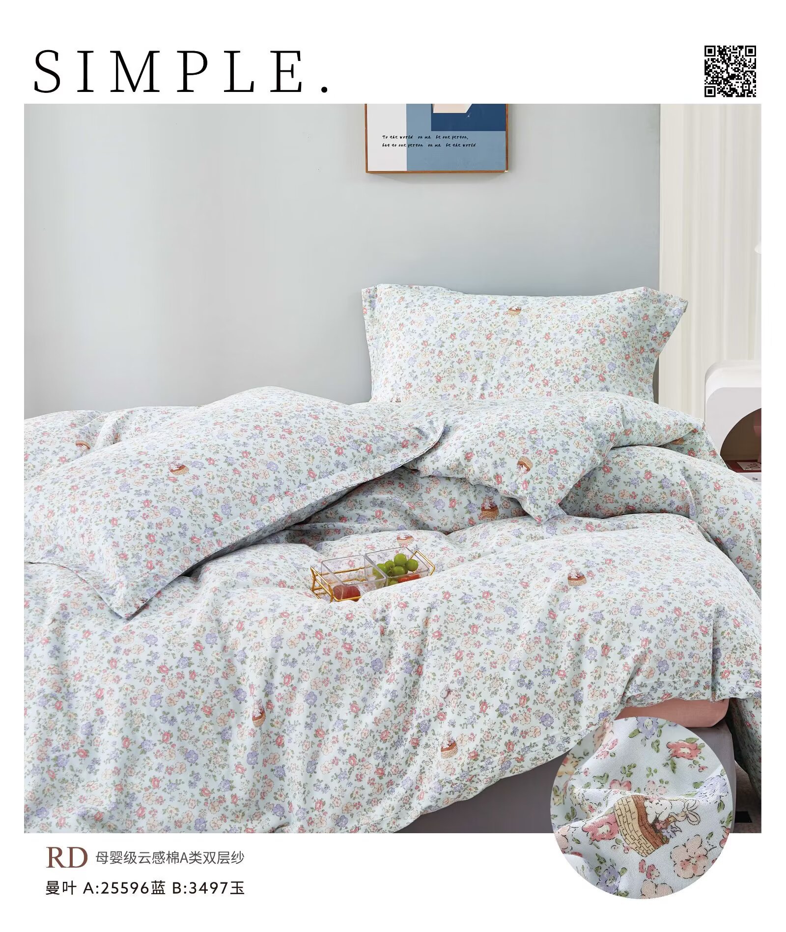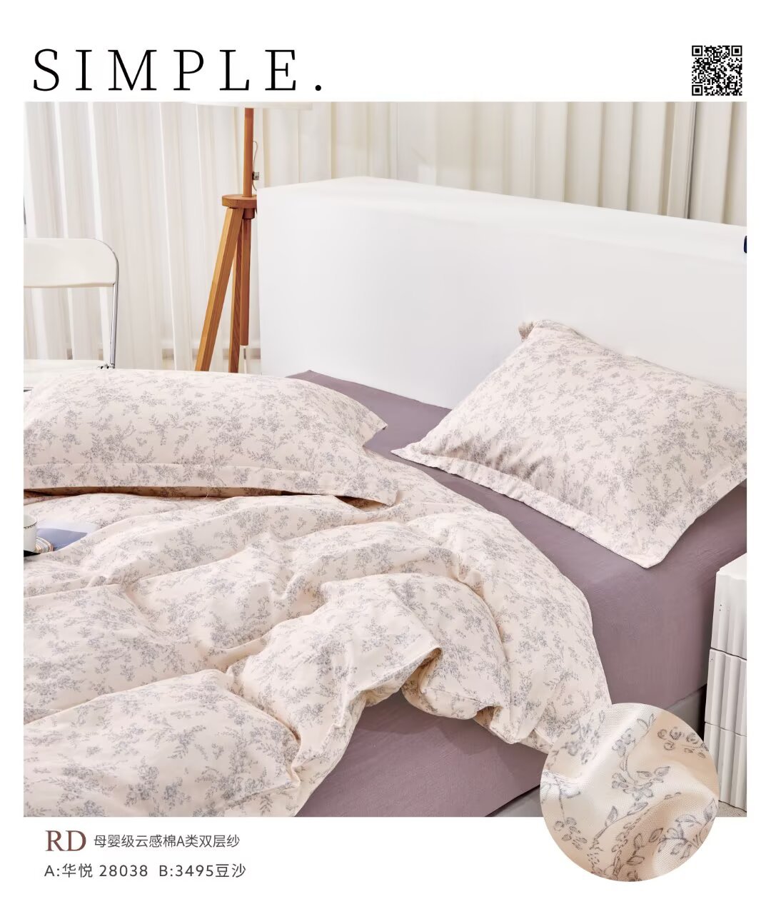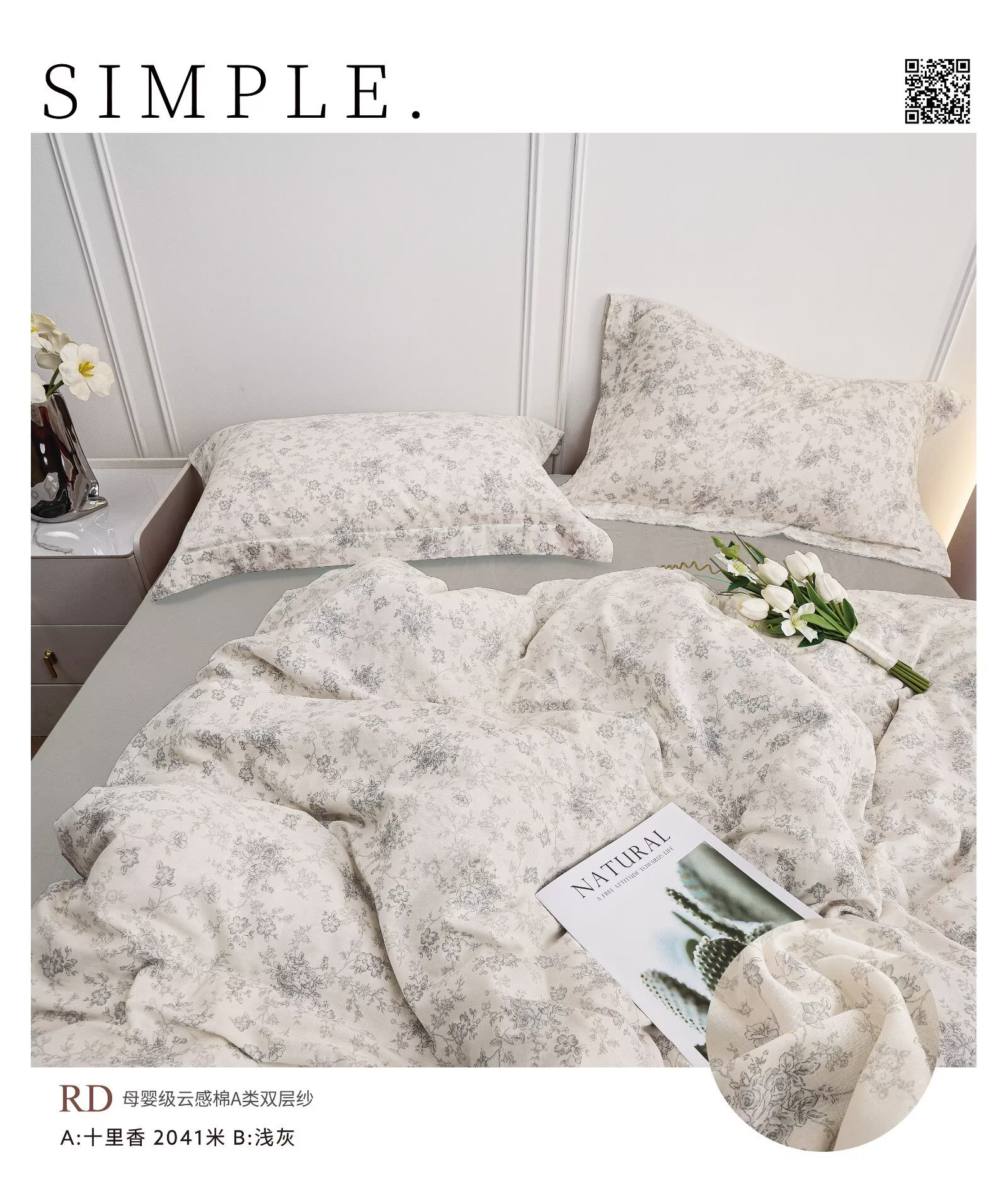 순면 이중 거즈 무슬린 순면 원단 A급 산모 및 유아용 원단 폭 250cm 면직물 도매