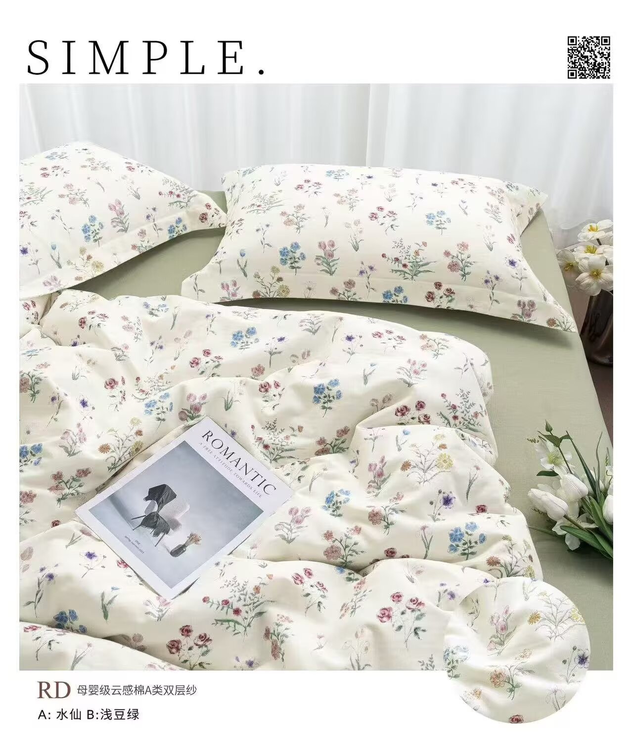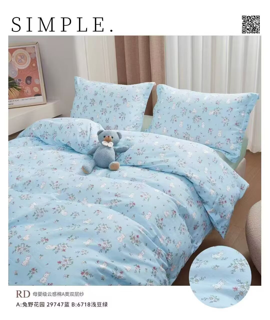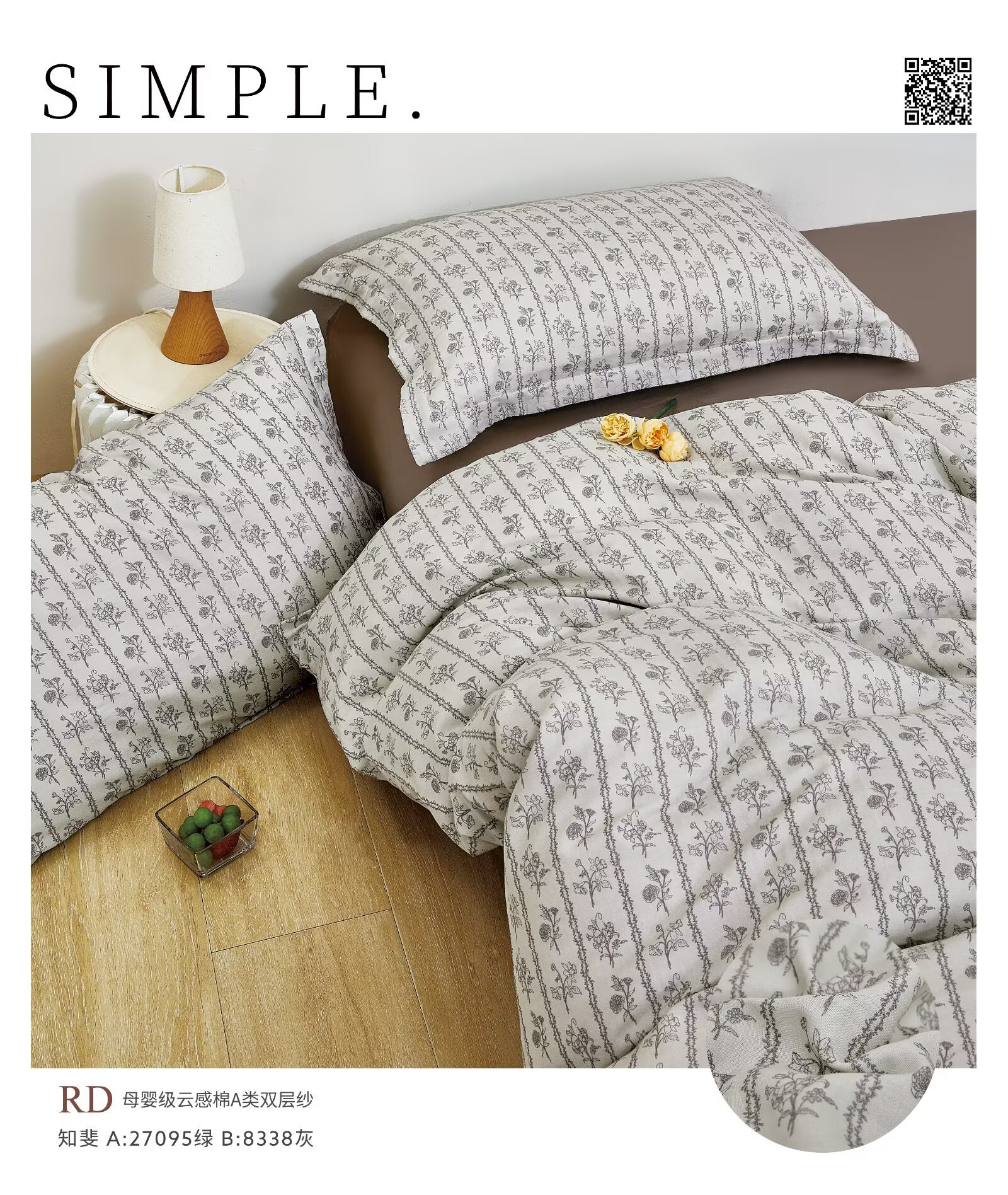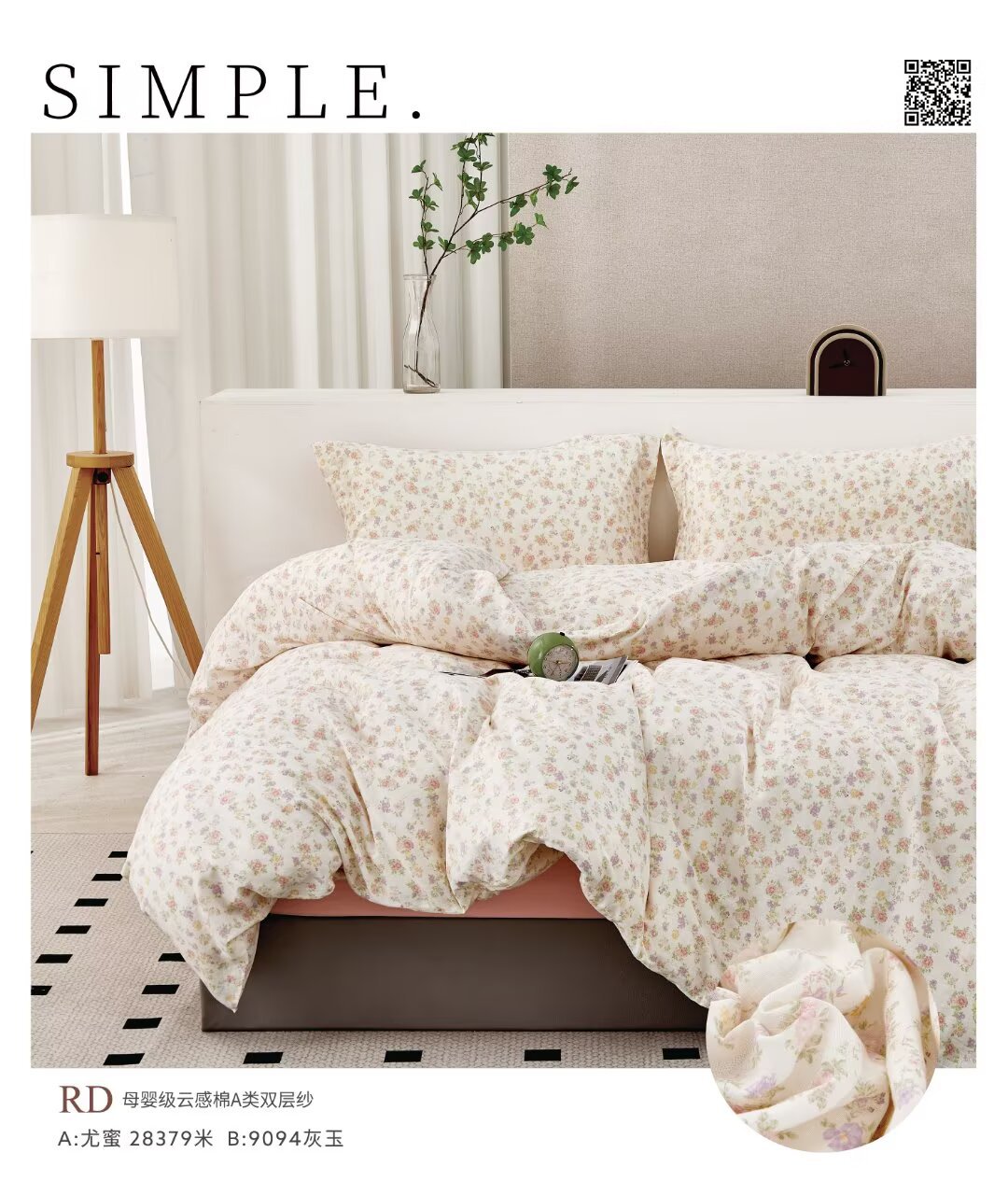 순면 이중 거즈 무슬린 순면 원단 A급 산모 및 유아용 원단 폭 250cm 면직물 도매