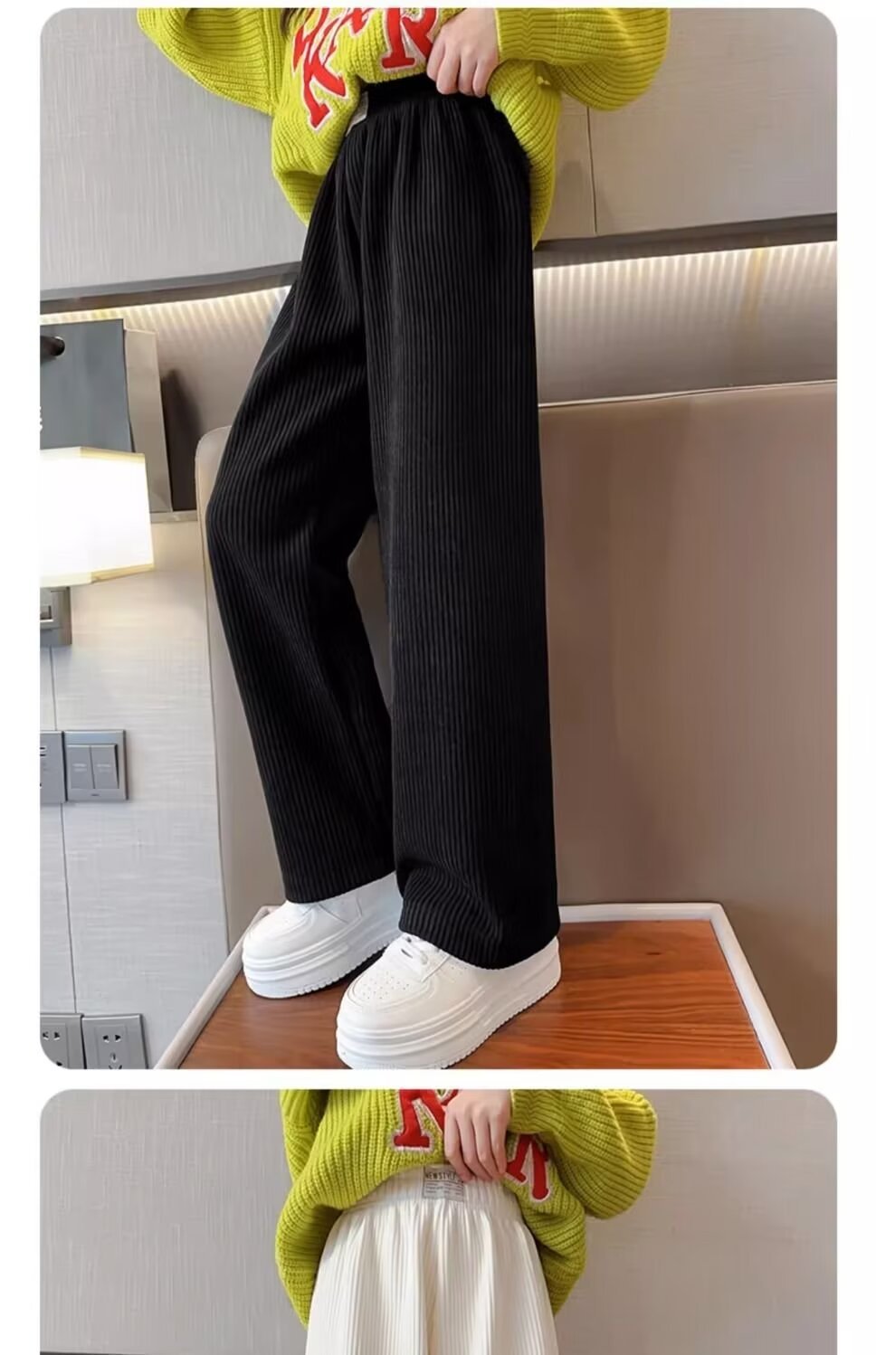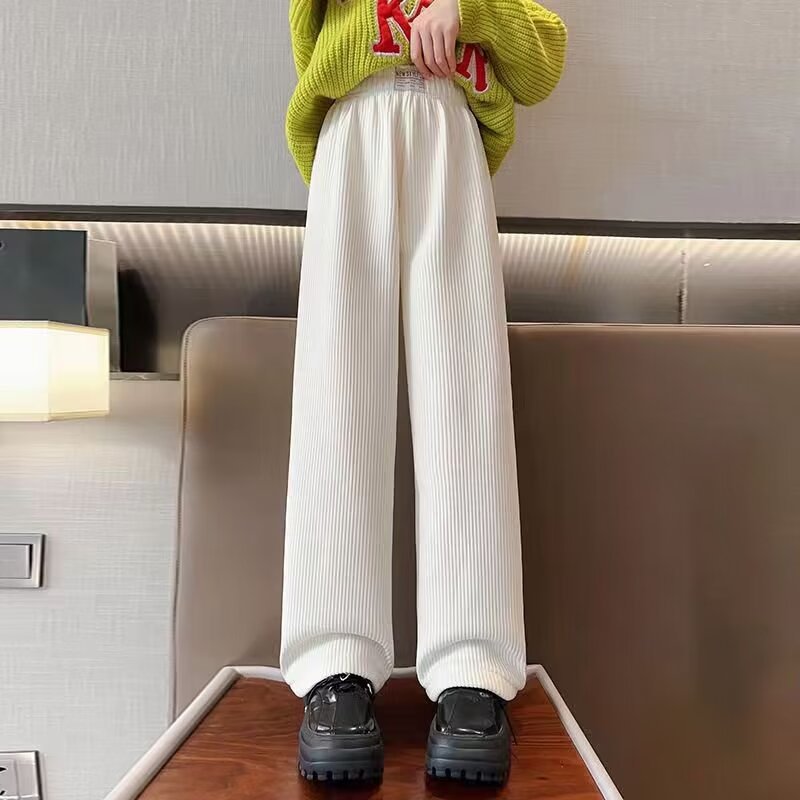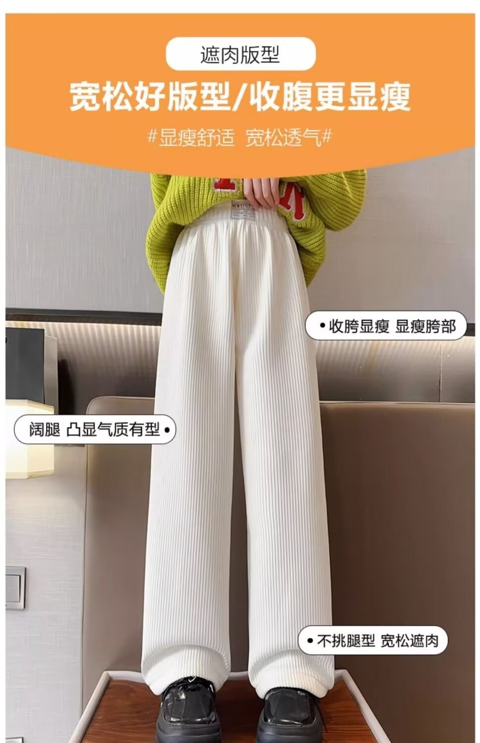 여자 캐주얼 느슨한 직선 다리 바지 큰 여자 한국 스타일 올매치 와이드 다리 바지 2024 새로운 서양 스타일 캐주얼 바지