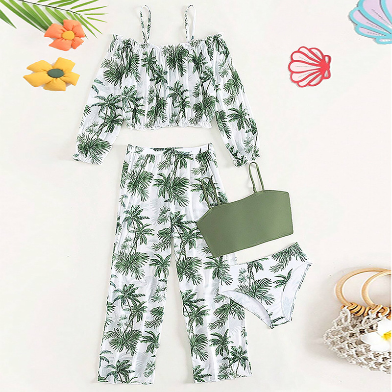 2025년 신상 여아 수영복 4종 세트, 스플릿 수영복 하의, 아동 휴가용 스플릿 수영복, 크로스보더 긴바지 수영복스토어 가기