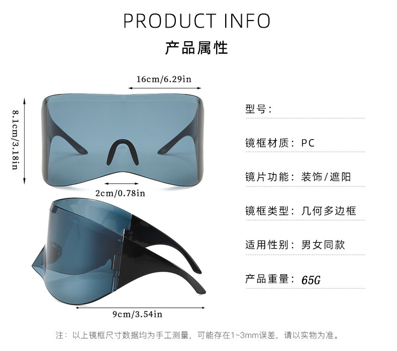유럽과 미국 패션 야외 승마 스트리트 펑크 스타일 대형 프레임 원피스 선글라스 남성과 여성