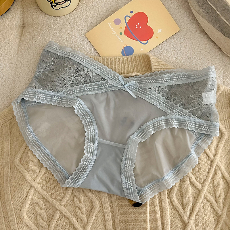 프랑스 스타일 섹시한 아이스 실크 속옷 여성의 순수한 욕망 초박형 빠른 건조 비 마킹 코튼 크로트 로우 허리 여성 브리프스토어 가기