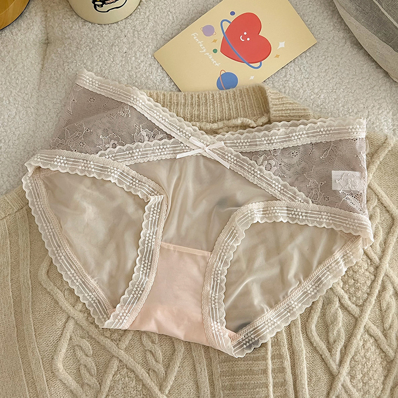 프랑스 스타일 섹시한 아이스 실크 속옷 여성의 순수한 욕망 초박형 빠른 건조 비 마킹 코튼 크로트 로우 허리 여성 브리프