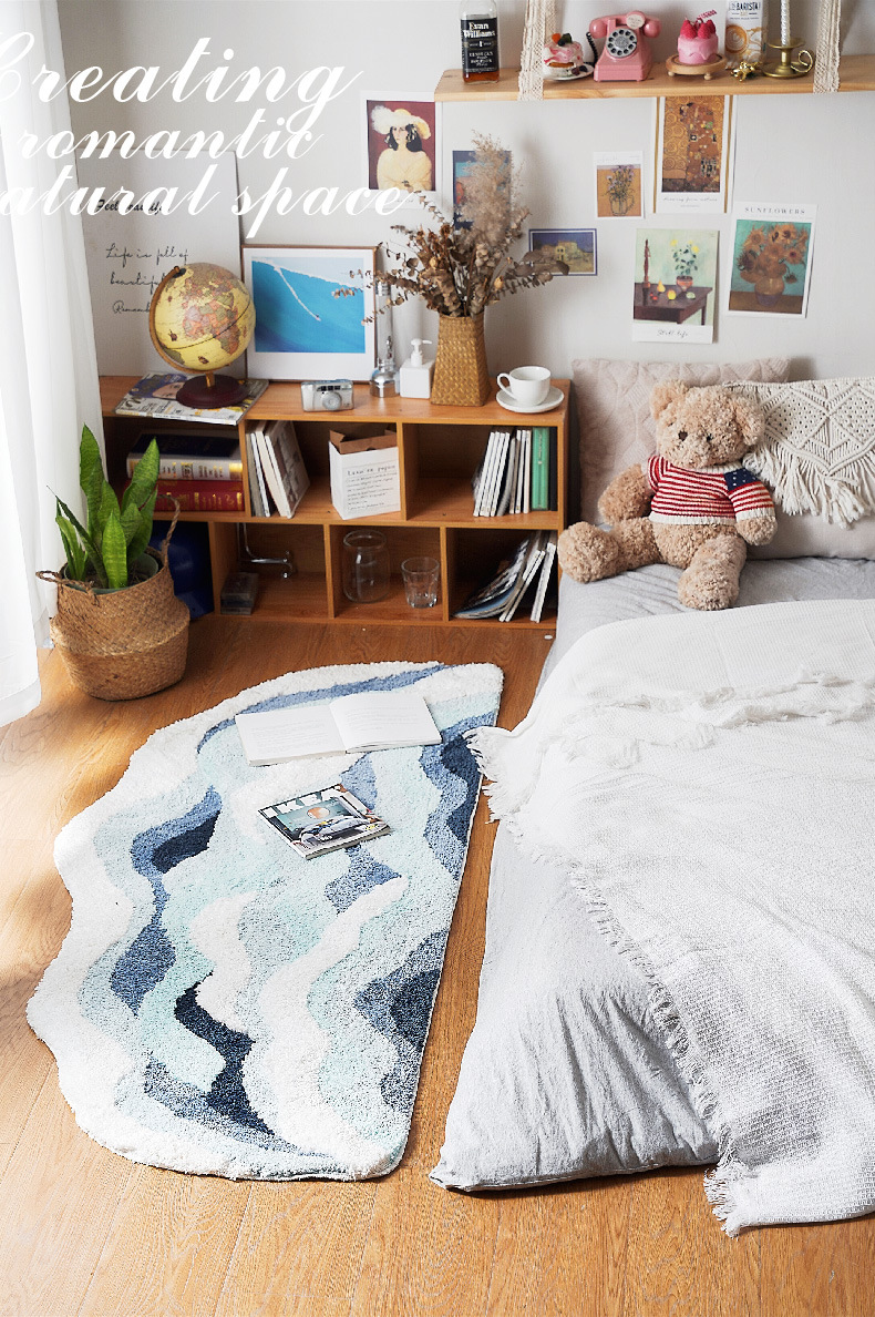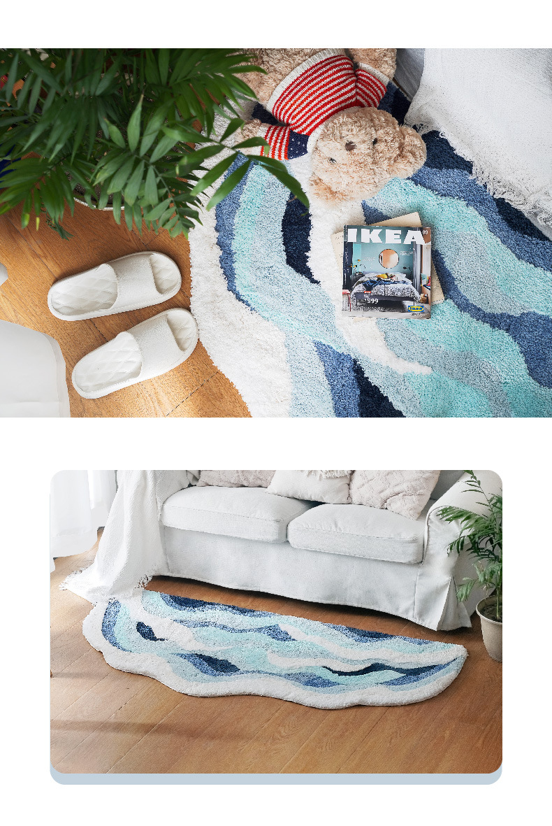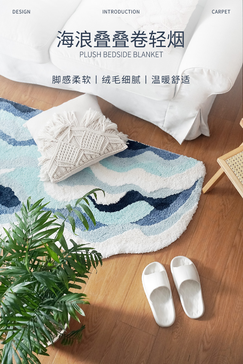 Ins 바람 파도 가정용 터프 티드 카펫 높고 낮은 모양의 장식 욕실 입구 문 흡수성 비 슬립 두꺼운 패딩 매트