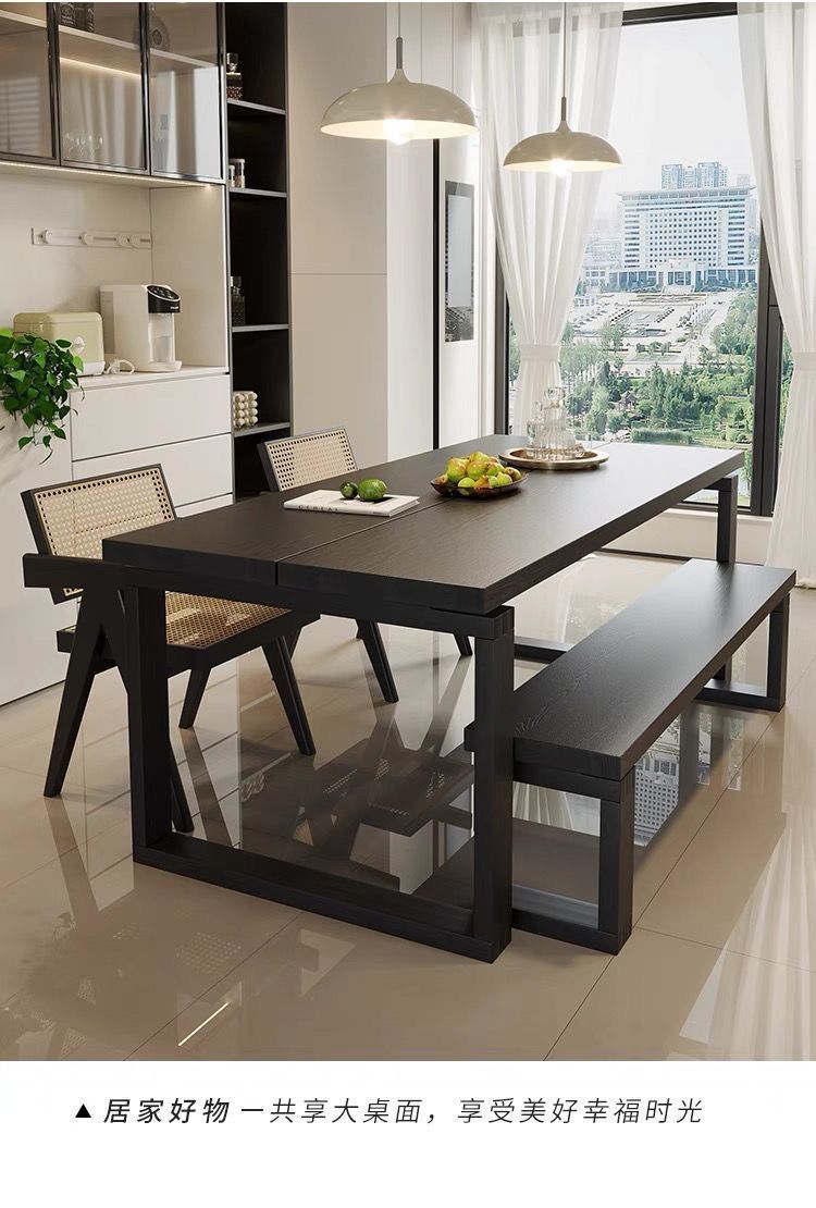 북미 모비 화이트 왁스 탄산 매트 블랙 실키 스타일 다이닝 테이블 가정용 직사각형 간단한 솔리드 우드 데스크