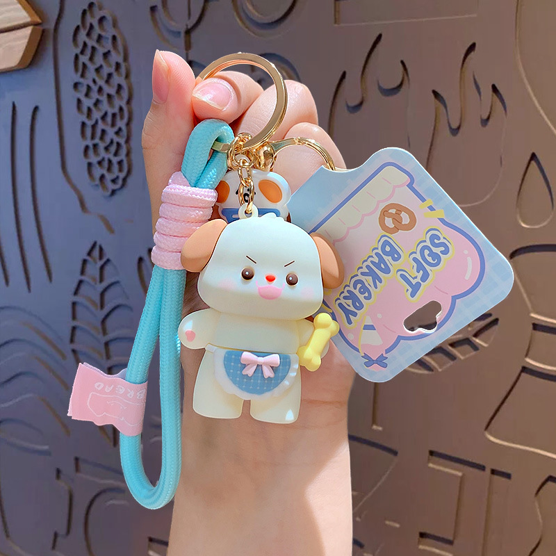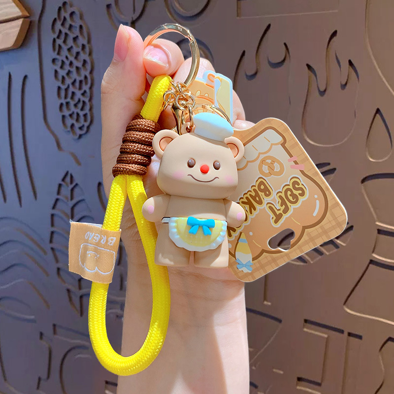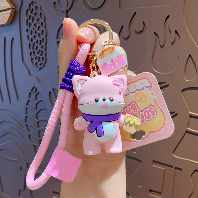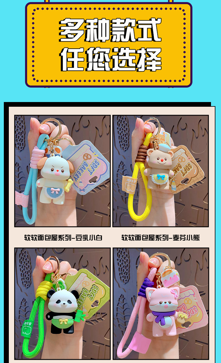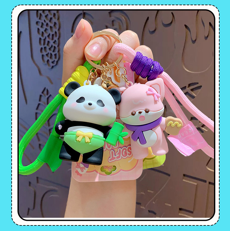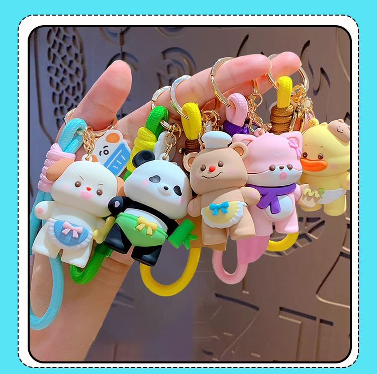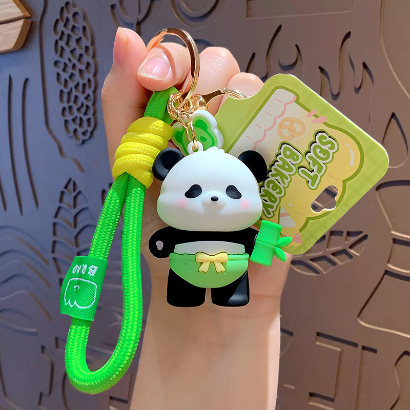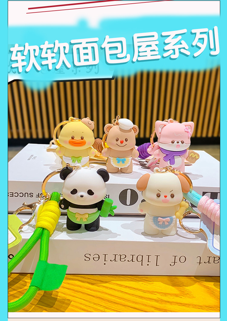 정품 만화 빵 하우스 팬더 키 체인 작은 펜던트 자동차 키 체인 가방 장식 인형 선물 도매스토어 가기