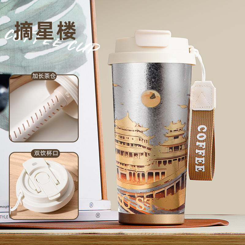커피컵 316 스테인리스 보온병 고급스러운 디자인 대용량 남녀 공용 물컵 학생용 세라믹 내부 보온병