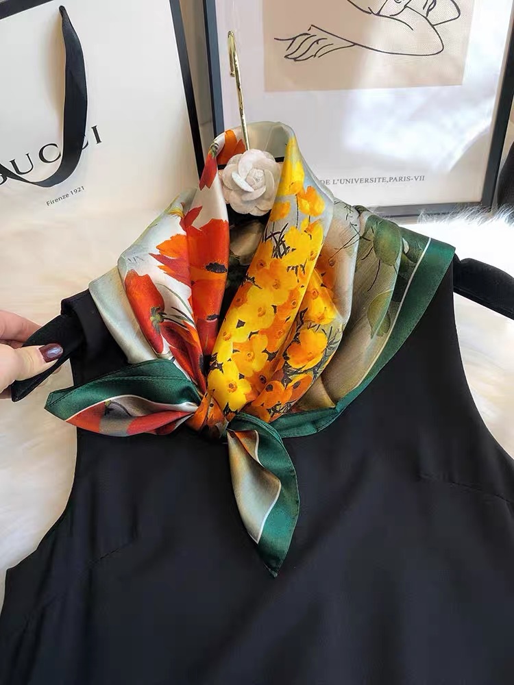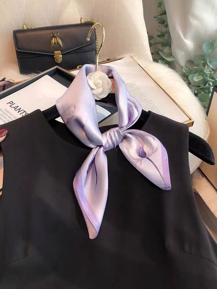 로즈 수수 같은 스타일의 실크 작은 광장 스카프 여성 실크 스카프 100% 뽕나무 실크 전문 스카프 장식 목도리 이야기스토어 가기