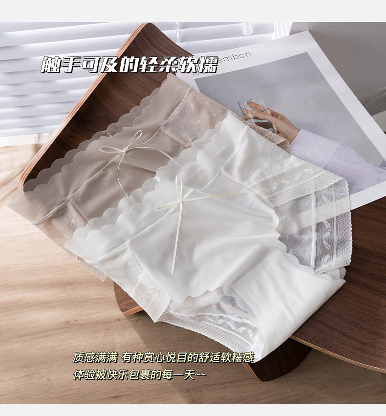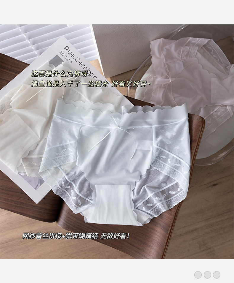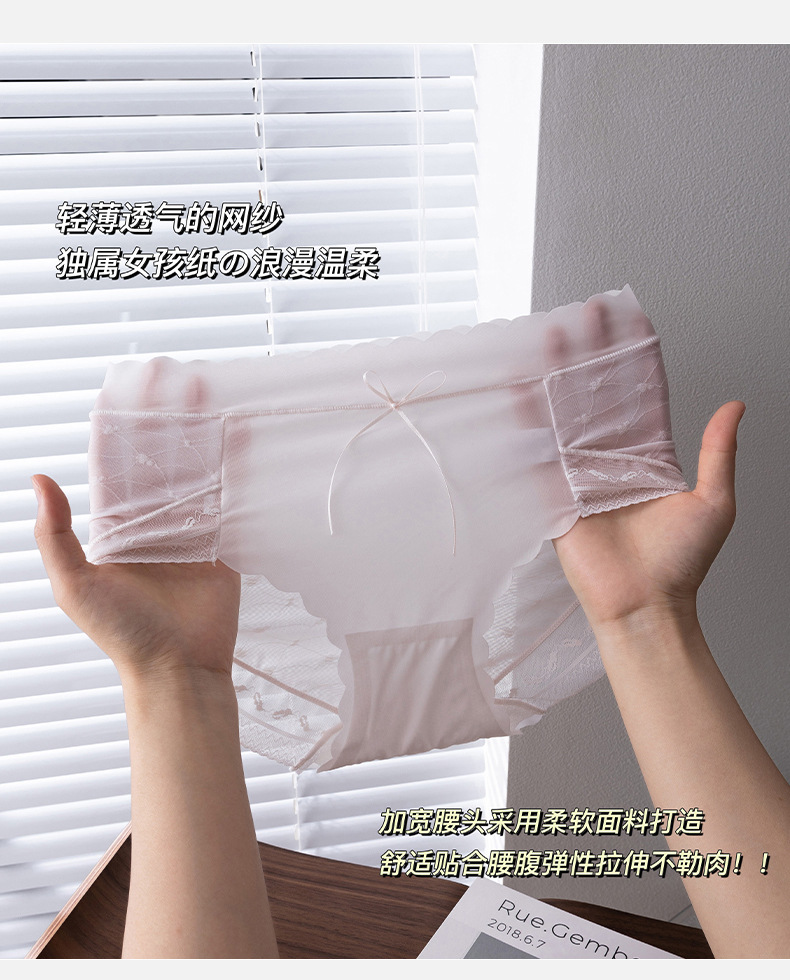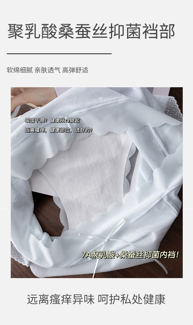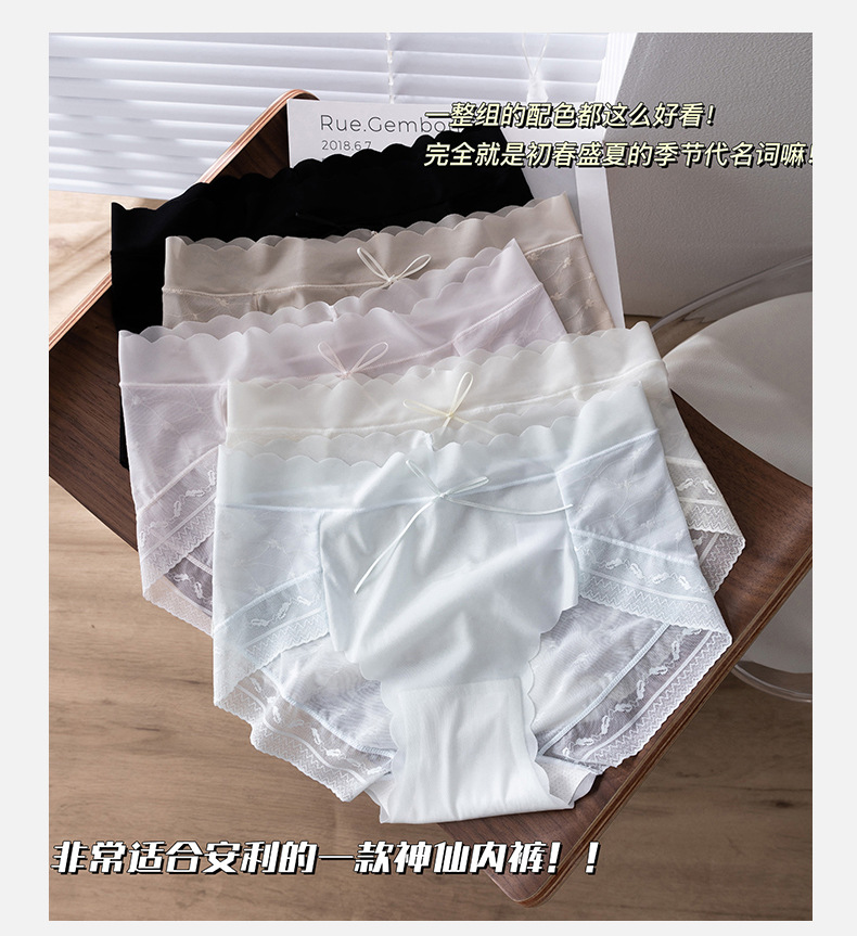 원활한 아이스 실크 속옷 여성의 매우 얇은 통기성 레이스 엉덩이 폴리 뽕나무 실크 젖산 항균 가랑이 소녀 브리프스토어 가기