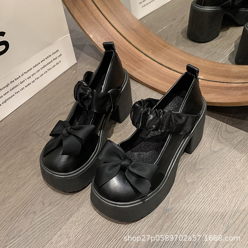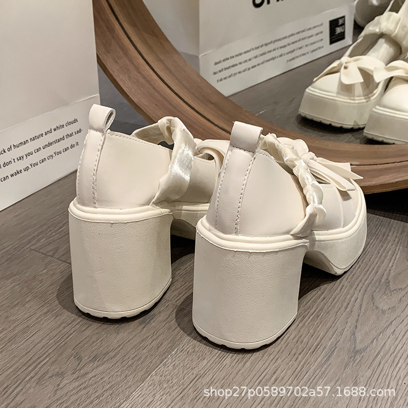 영국 스타일 Mary Jane 작은 가죽 신발 2024 봄과 가을 새로운 두꺼운 밑창 플랫폼 케이크 바닥 두꺼운 뒤꿈치 신발 여성의 얕은 입 로퍼스토어 가기