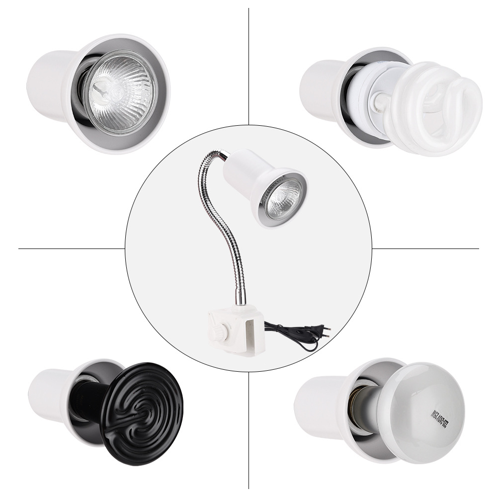 特点:灯身可自由调节、灯罩可防止动物烫伤、陶瓷灯头可耐200W灯泡;