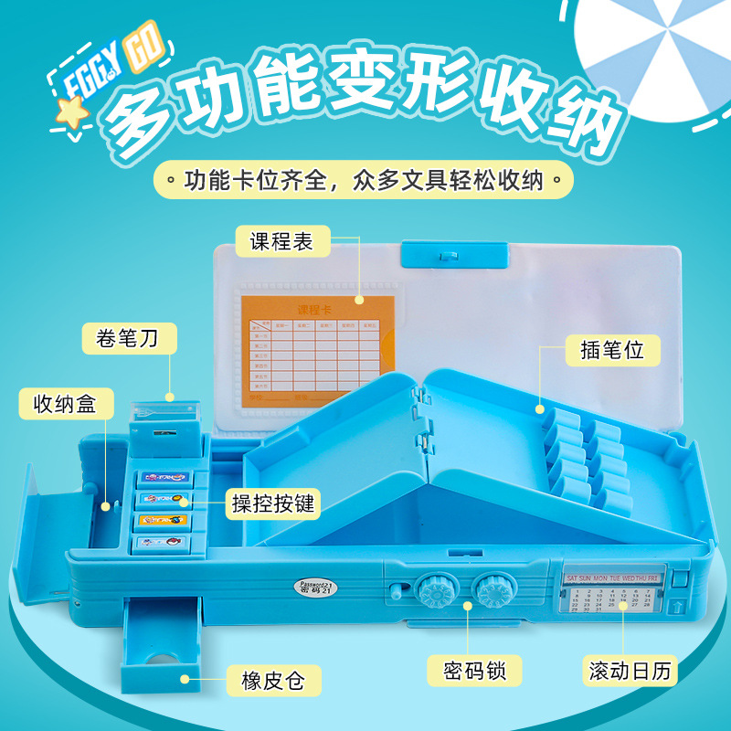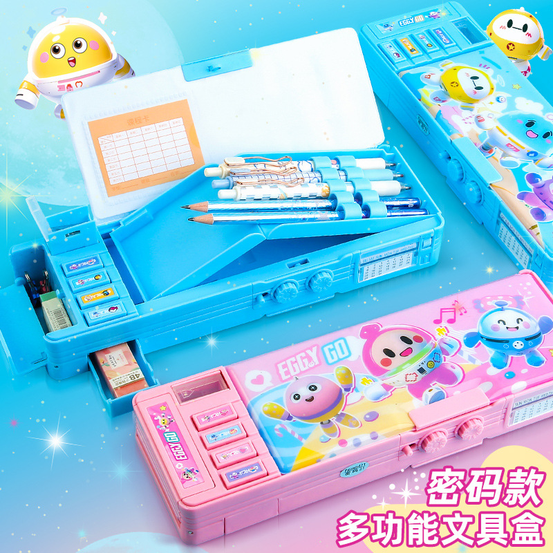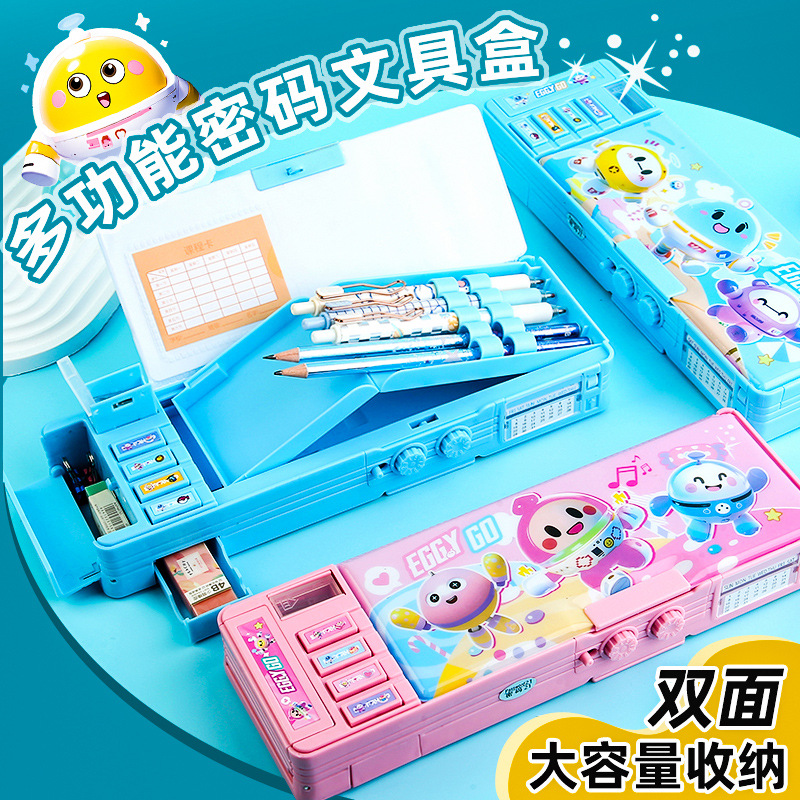 비밀번호 잠금 문구 상자 양면 대용량 다기능 열쇠 연필 상자 초등학생 소년 소녀 달걀 파티