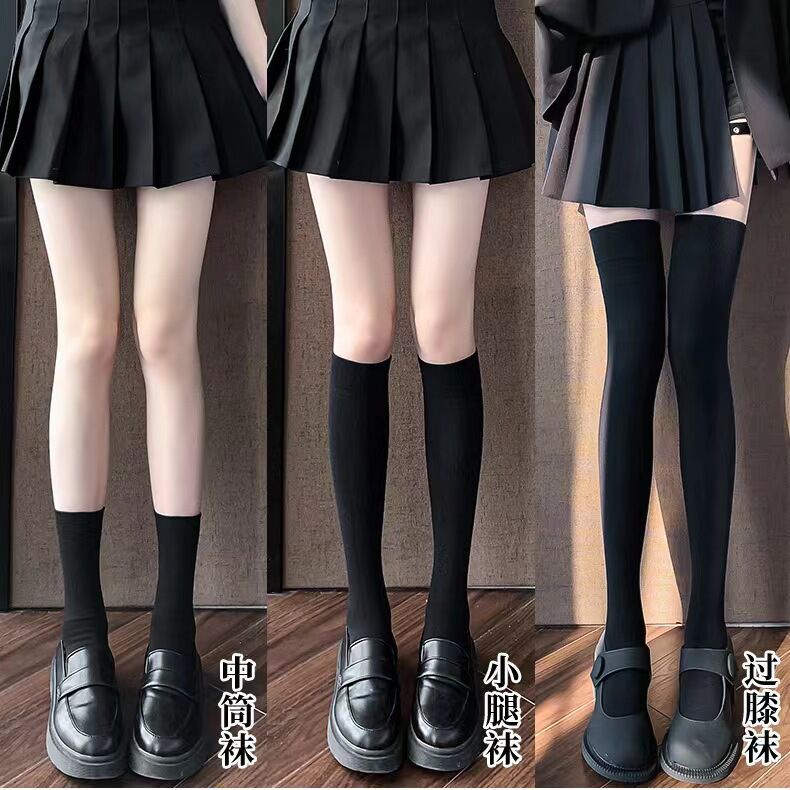 벨벳 송아지 양말 JK 여성 스타킹 무릎 위 양말 압력 다리 보여주는 중간 길이 양말 봄과 가을 솔리드 컬러 스타킹스토어 가기