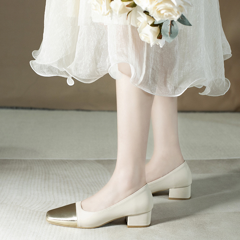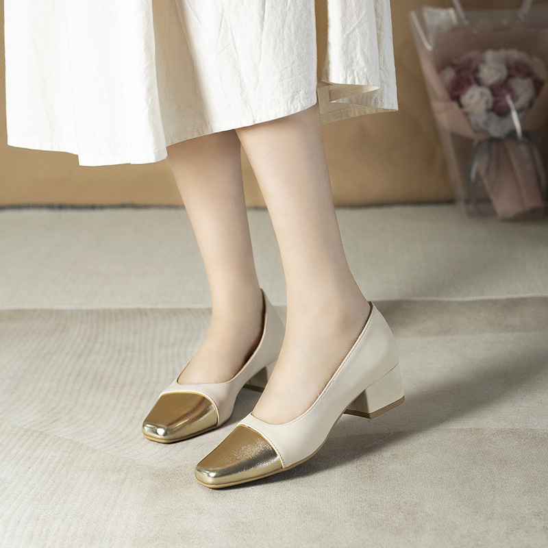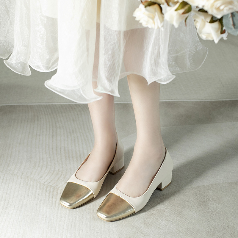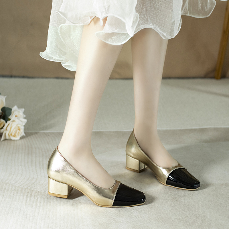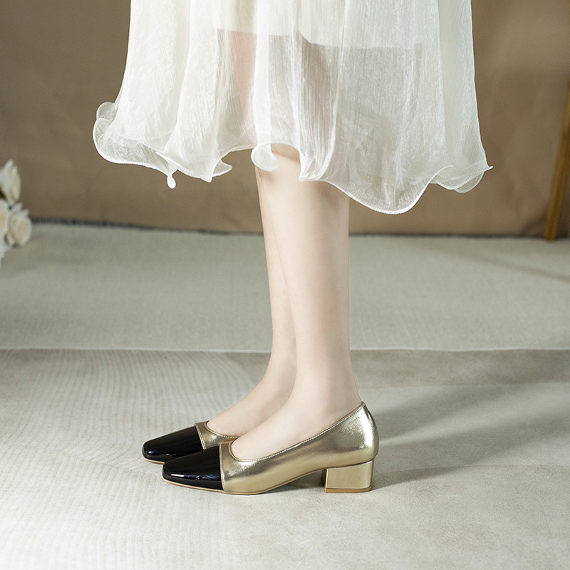 컬러 블록 작은 샤넬 스타일 싱글 레이어 신발 여성 여름 새로운 두꺼운 힐 신발 여성 스퀘어 헤드 메리 제인 레트로 여성 신발 배치
