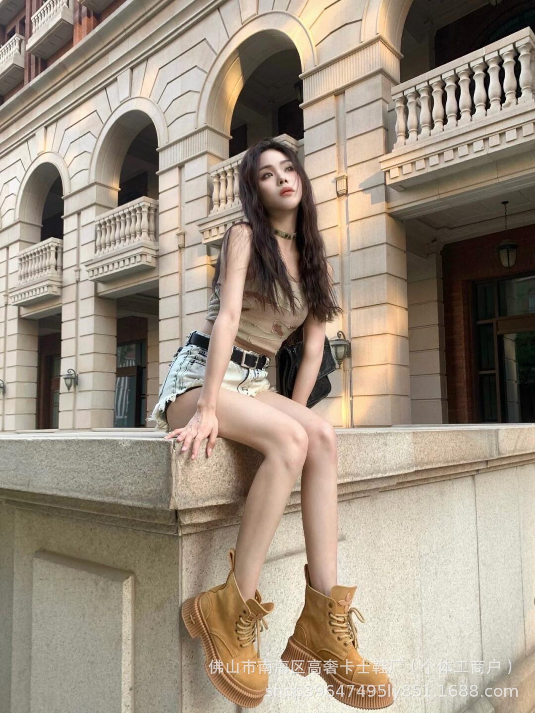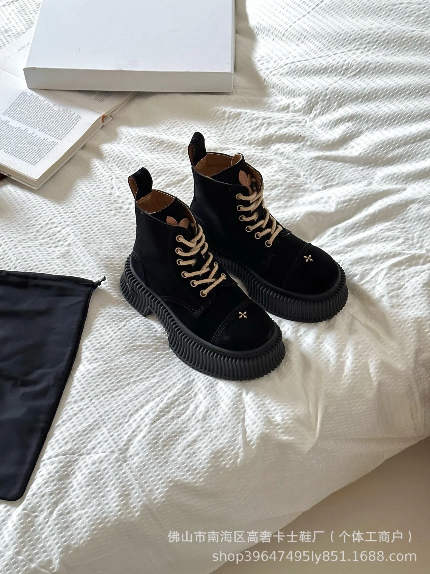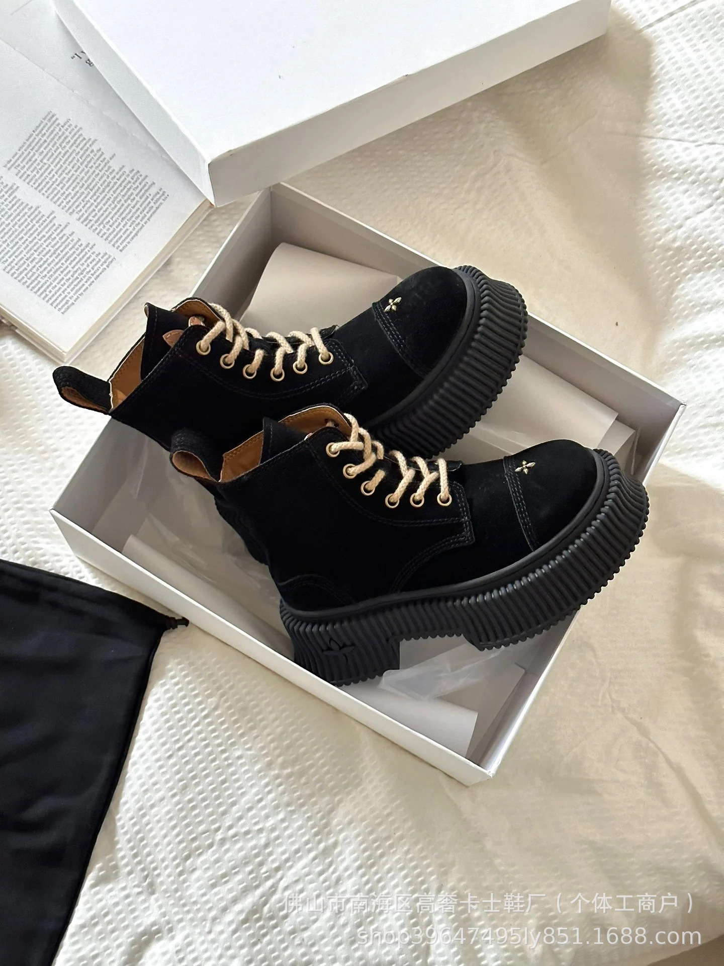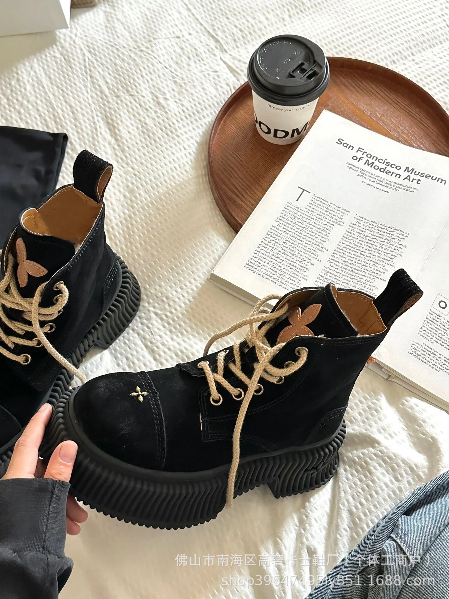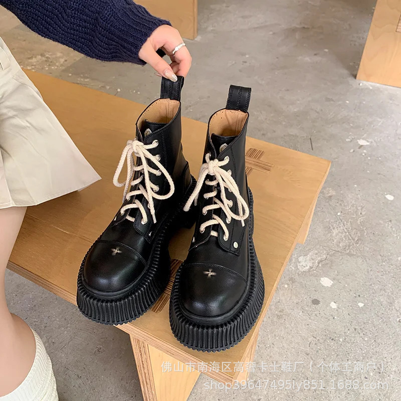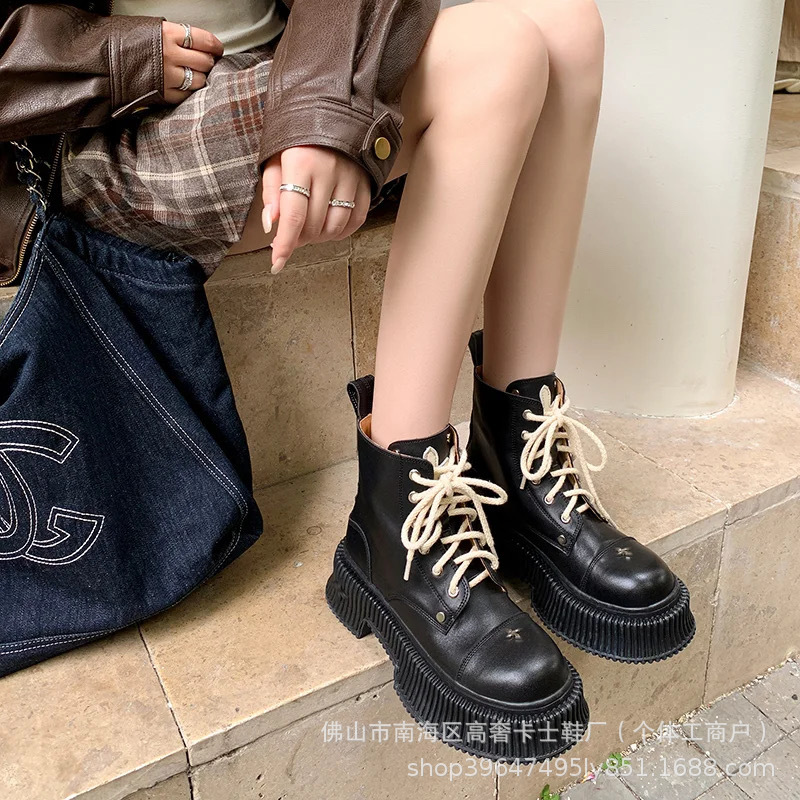 2024 새로운 SMFK 두꺼운 밑창 사막 빅 레드 부츠 마틴 부츠 여성 복고풍 정품 가죽 높이 증가 라운드 발가락 영국 스타일 짧은 부츠스토어 가기