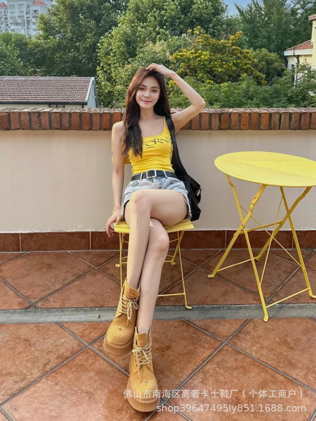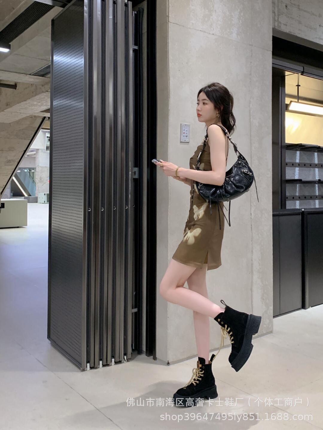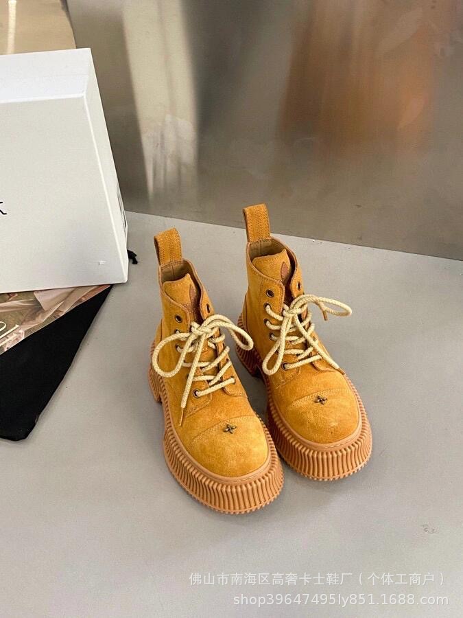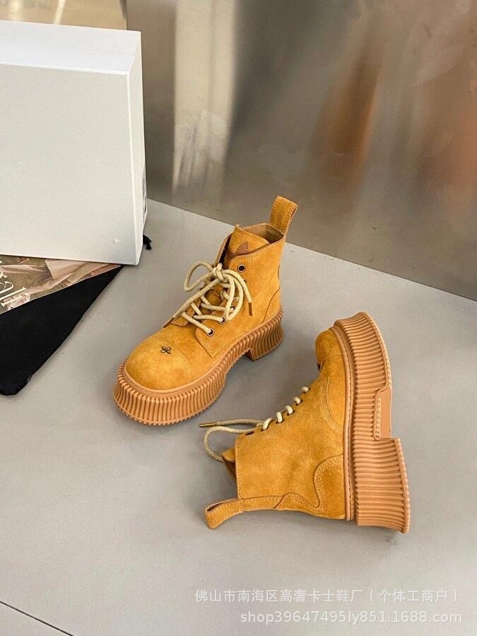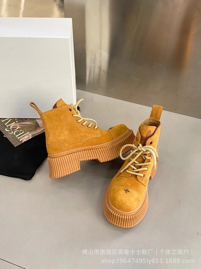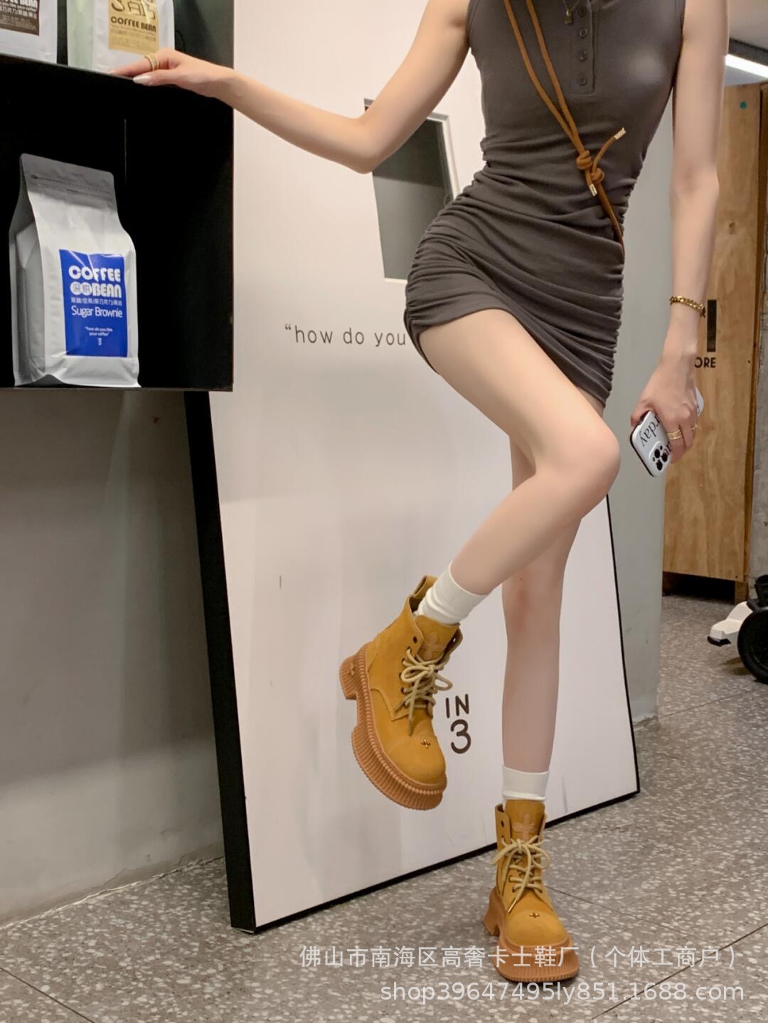 2024 새로운 SMFK 두꺼운 밑창 사막 빅 레드 부츠 마틴 부츠 여성 복고풍 정품 가죽 높이 증가 라운드 발가락 영국 스타일 짧은 부츠스토어 가기