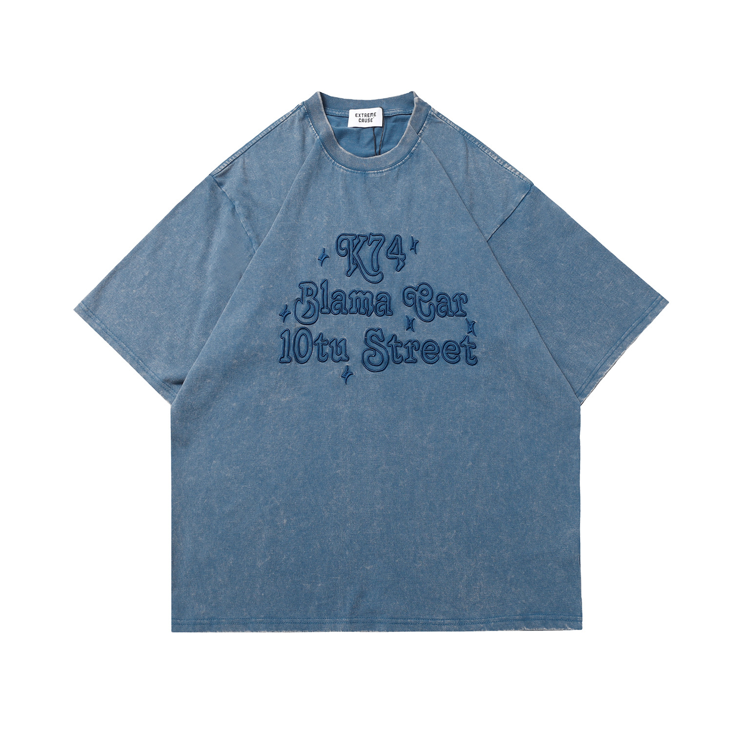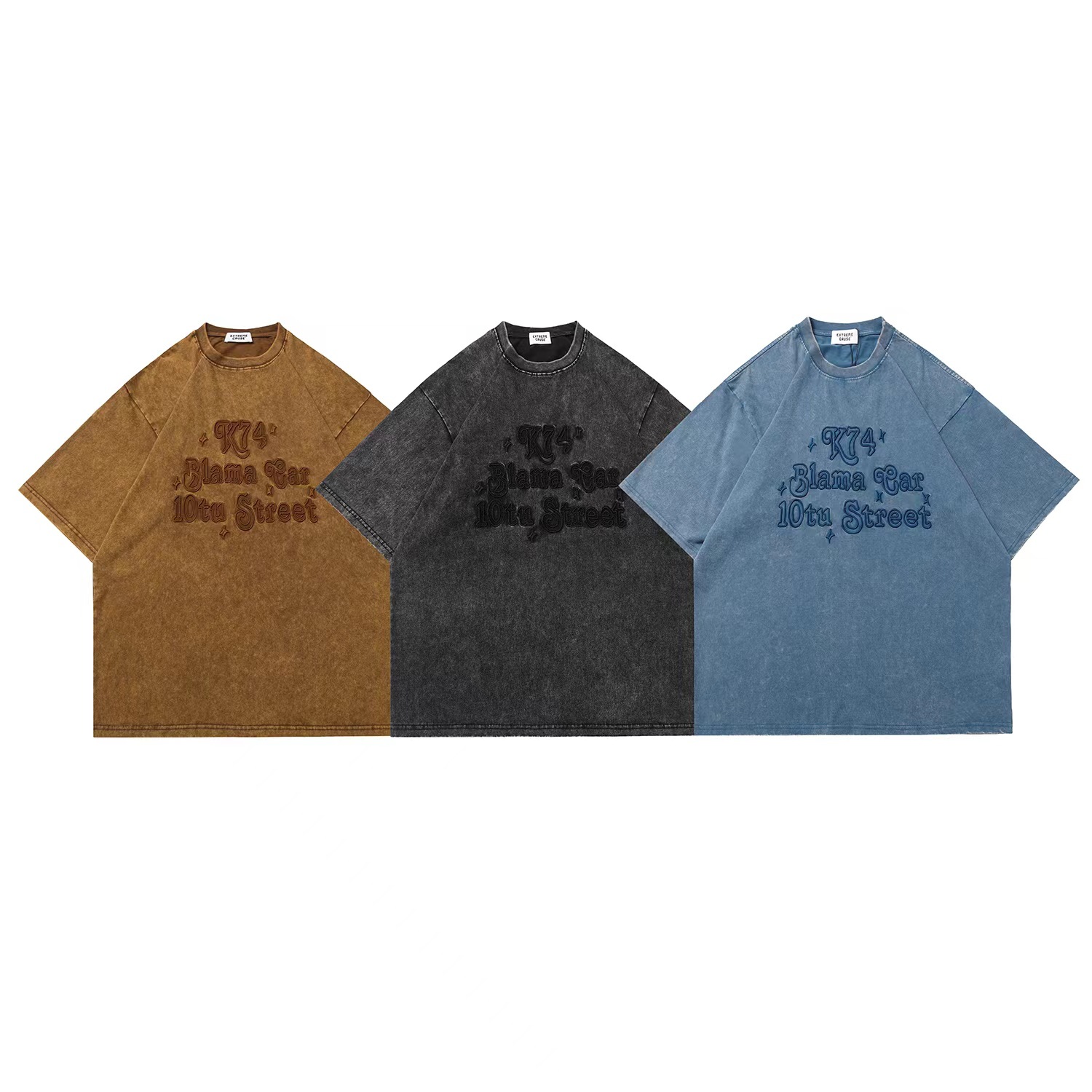 아메리칸 스타일 빈티지 오래된 자수 반팔 티셔츠 남성과 여성 인스타그램 인기 브랜드 힙합 느슨한 반소매 탑스토어 가기