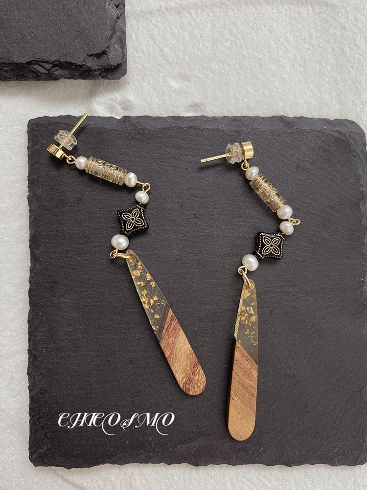 원래 중국 레트로 Qimeng Cosmic Eave 의미 골동품 나무 구슬 진주 귀걸이 긴 귀걸이스토어 가기