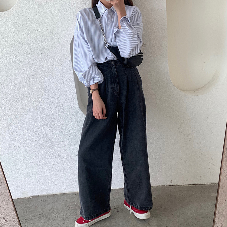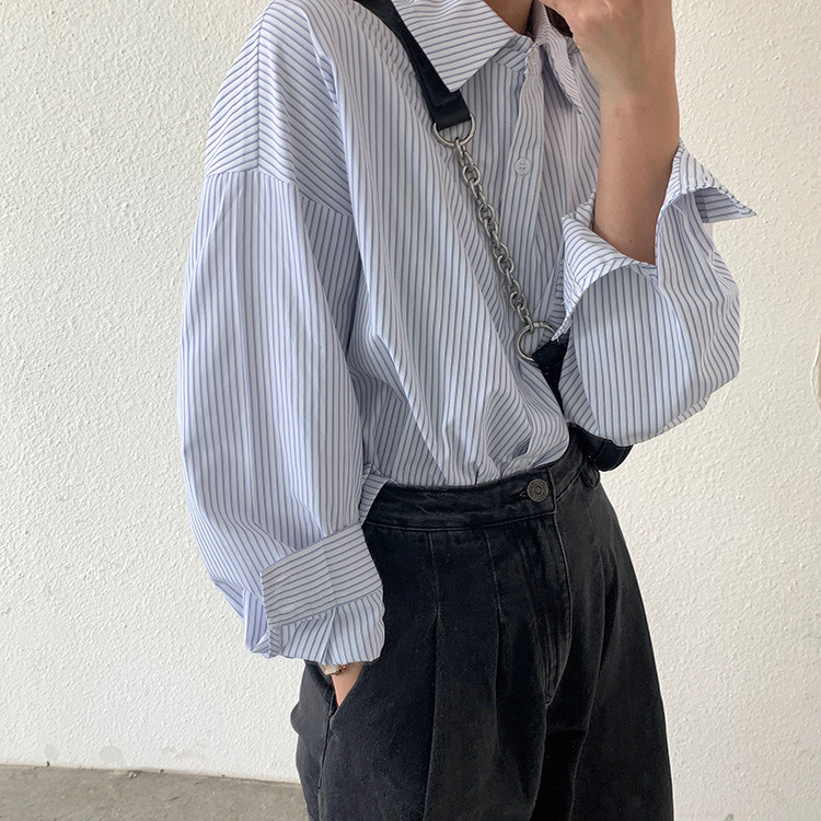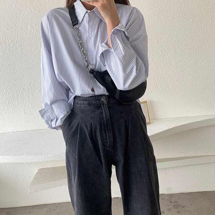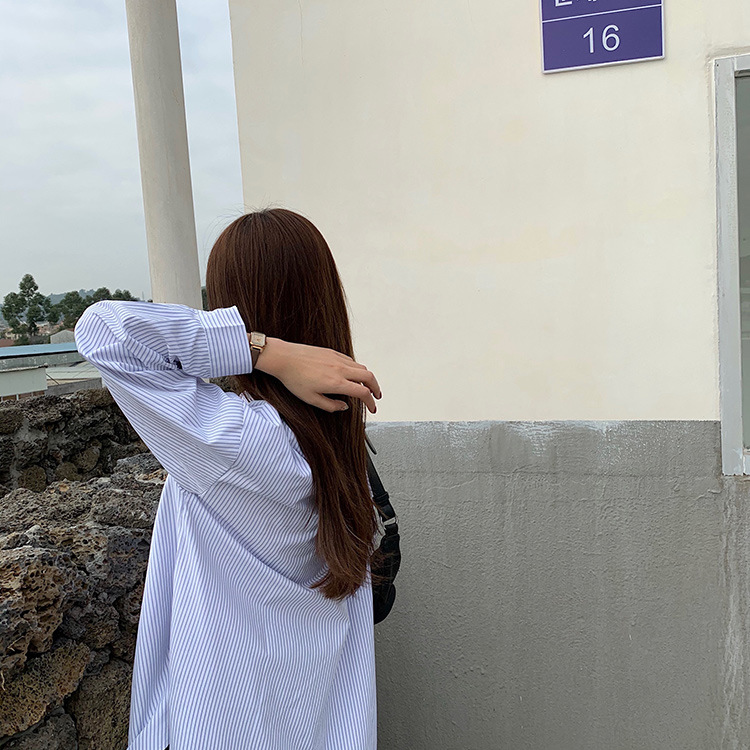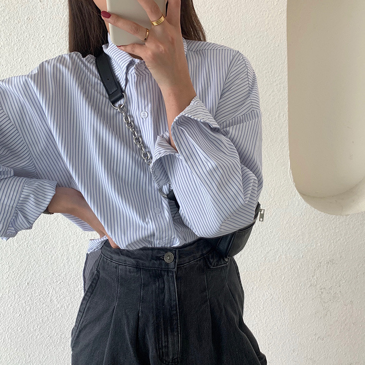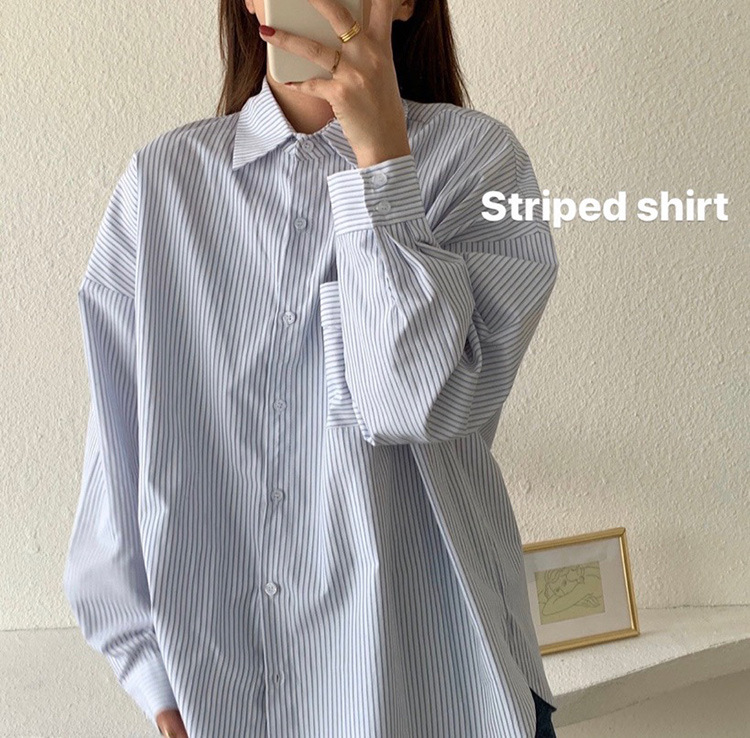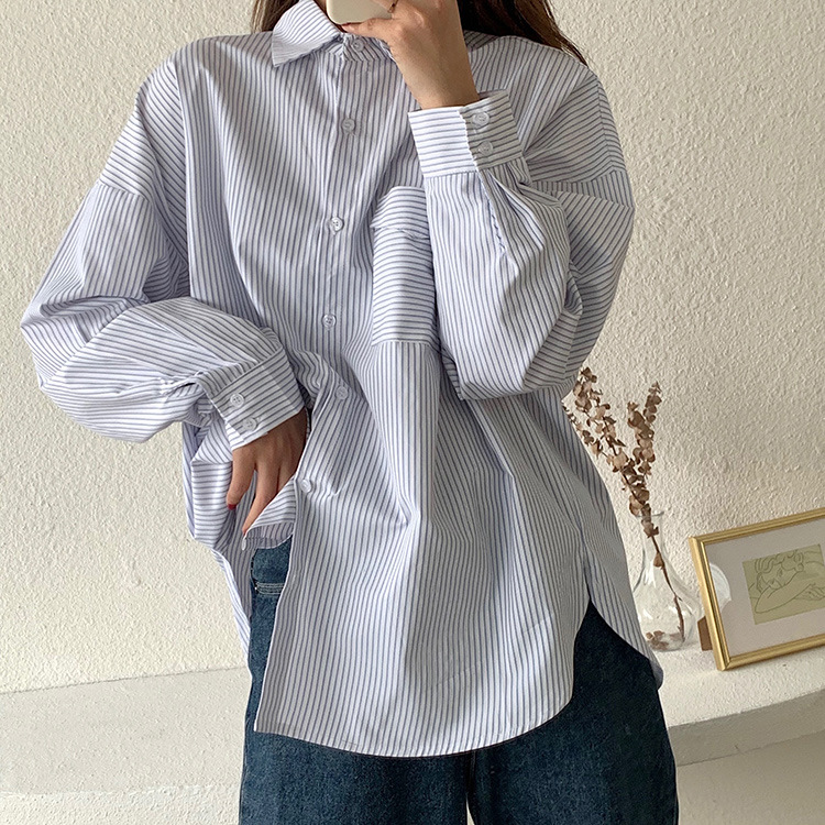 블루 스트라이프 셔츠 재킷 여성 봄, 가을 디자인 틈새 시장 2024 새로운 한국어 버전 초가을 긴팔 탑스토어 가기