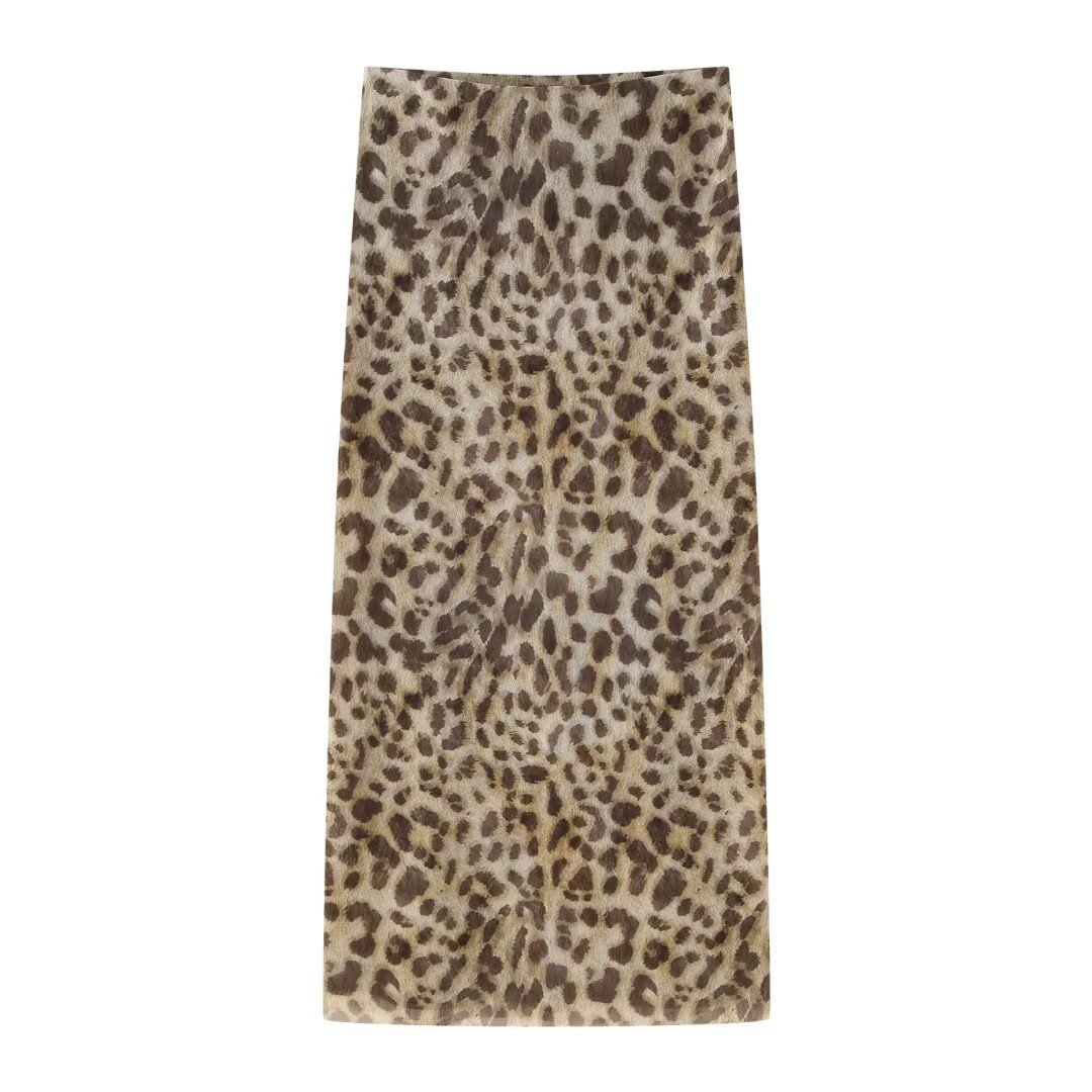 2024 년 여름 새로운 스트랩리스 여성 패션 동물 프린트 레오파드 실크 메쉬 스커트 세트 국경 간 유럽과 미국 스커트스토어 가기