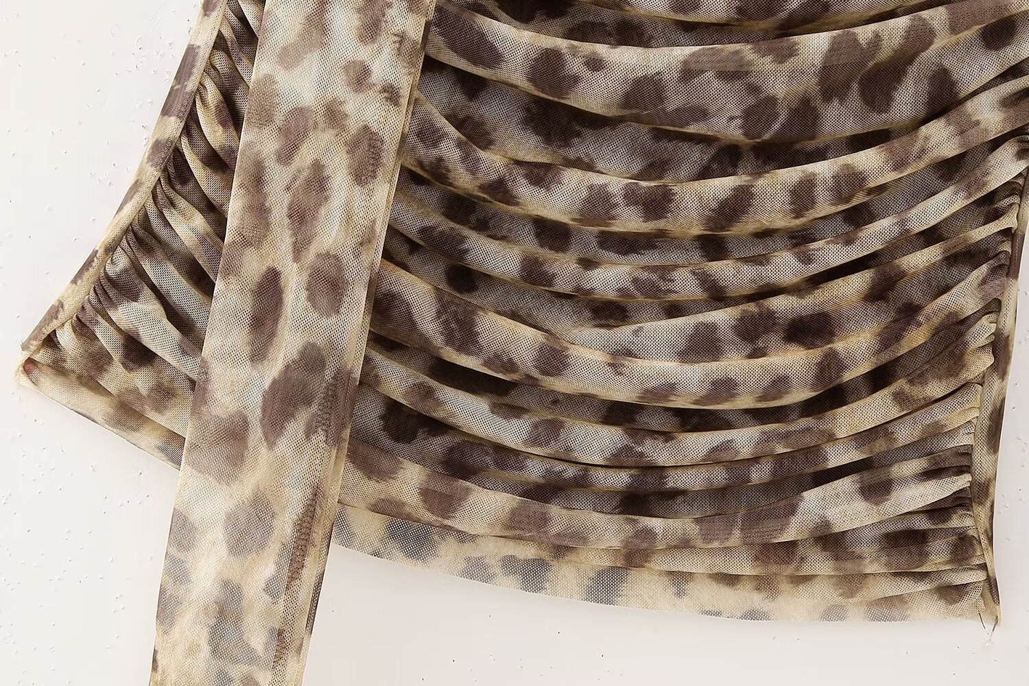 2024 년 여름 새로운 스트랩리스 여성 패션 동물 프린트 레오파드 실크 메쉬 스커트 세트 국경 간 유럽과 미국 스커트