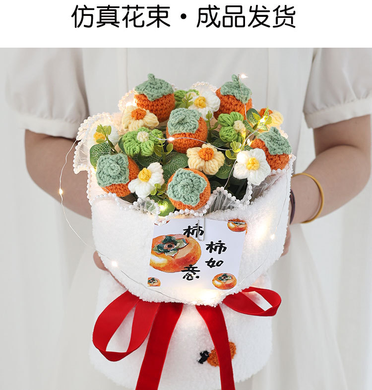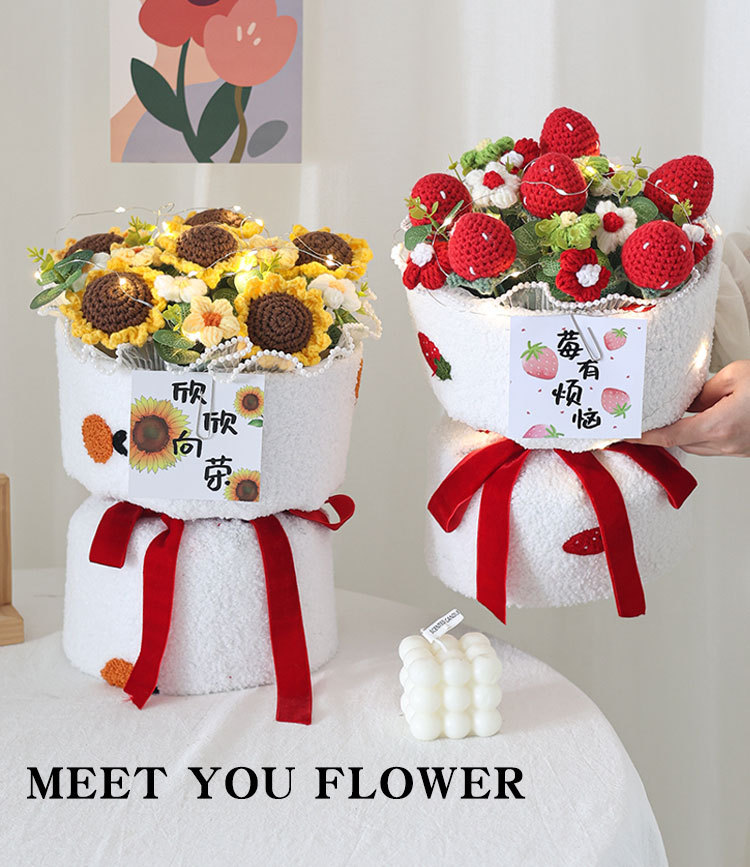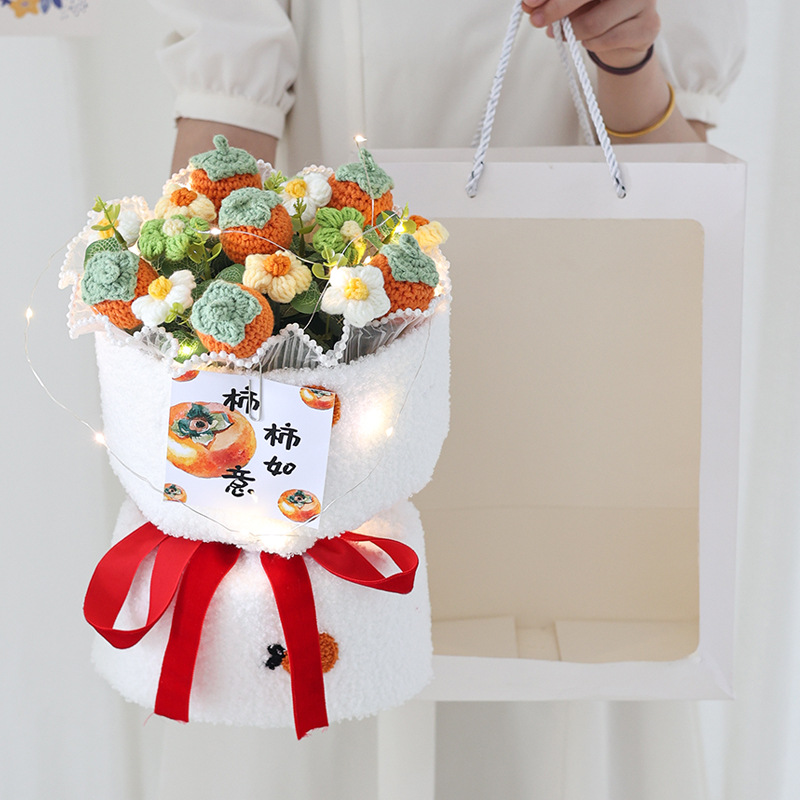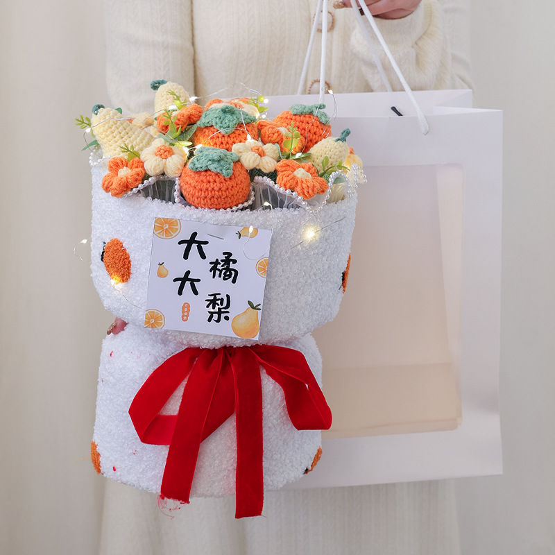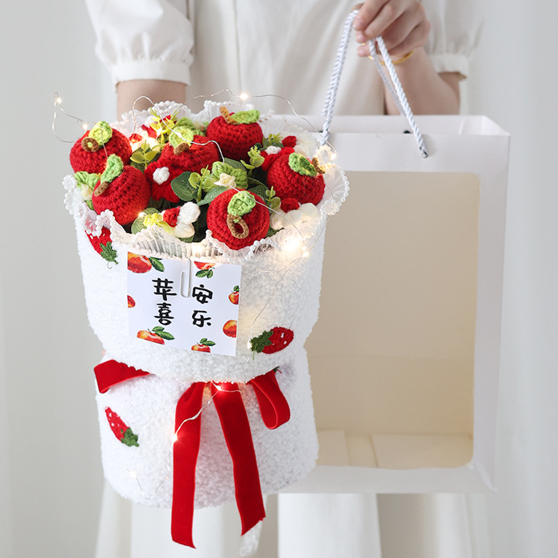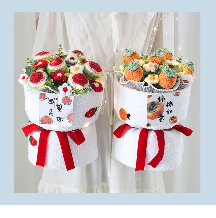 니트 꽃다발 졸업 시즌, 한 번에 우승 양모 꽃 과일 생일 선물 최고의 친구 딸기 감 루이 집들이
