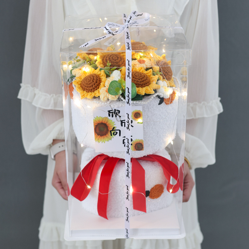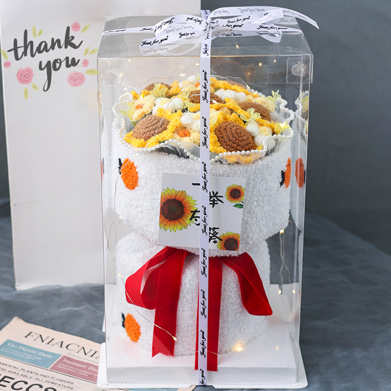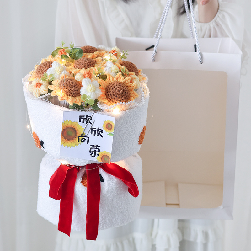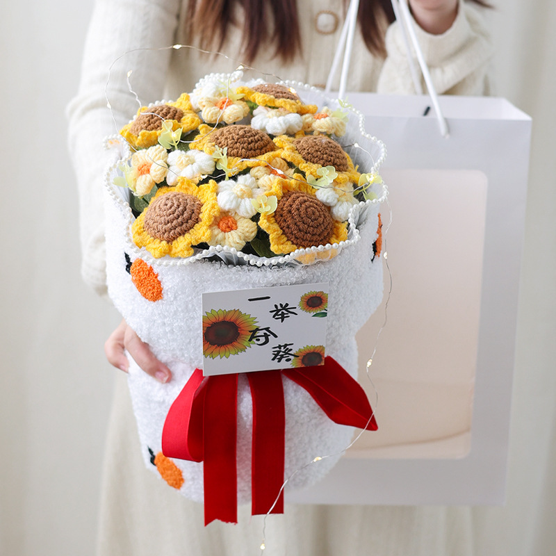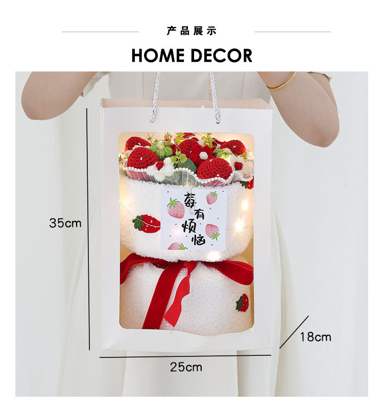 니트 꽃다발 졸업 시즌, 한 번에 우승 양모 꽃 과일 생일 선물 최고의 친구 딸기 감 루이 집들이