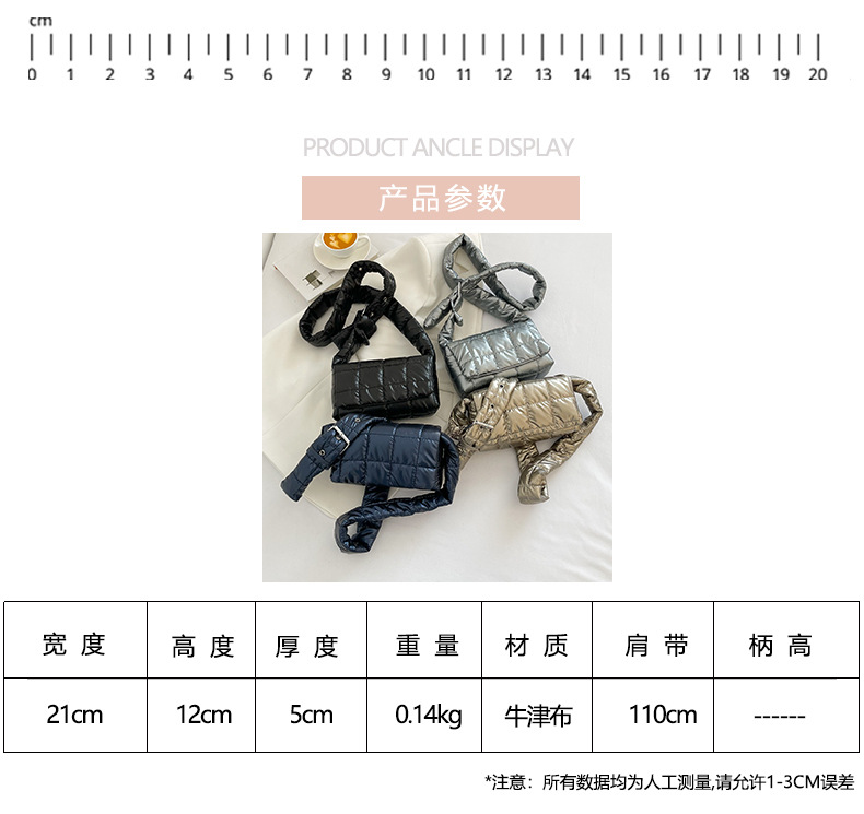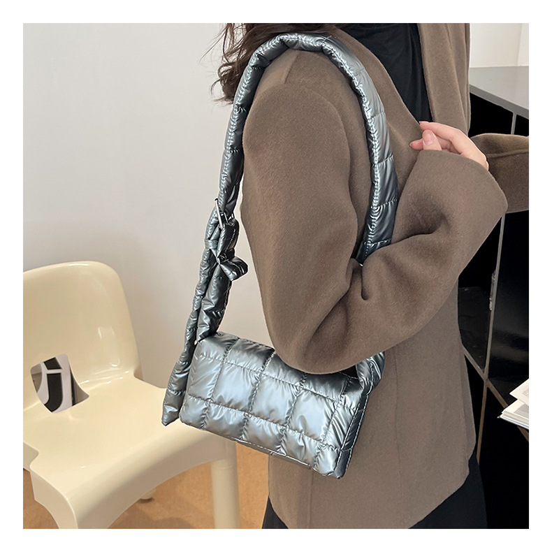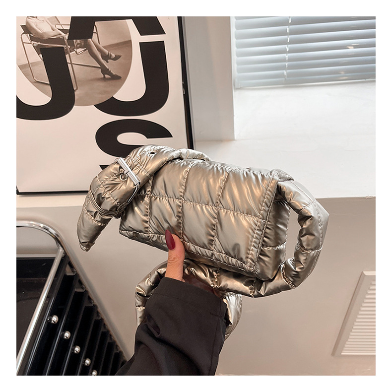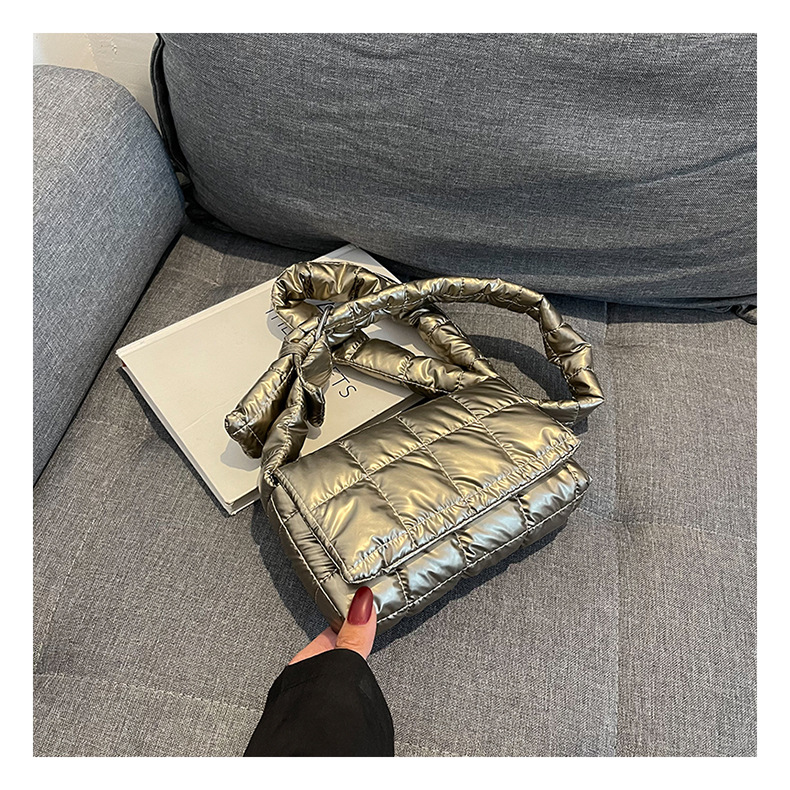 높은 색상 가치 가방 여성의 작은 가방 경량 2024 새로운 패션 다운 패션 가을과 겨울 캐주얼 어깨 가방 작은 광장 가방