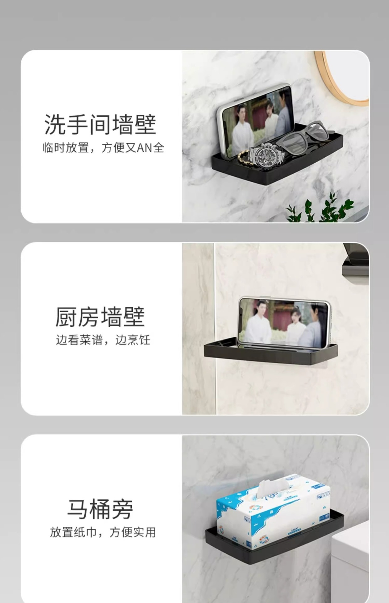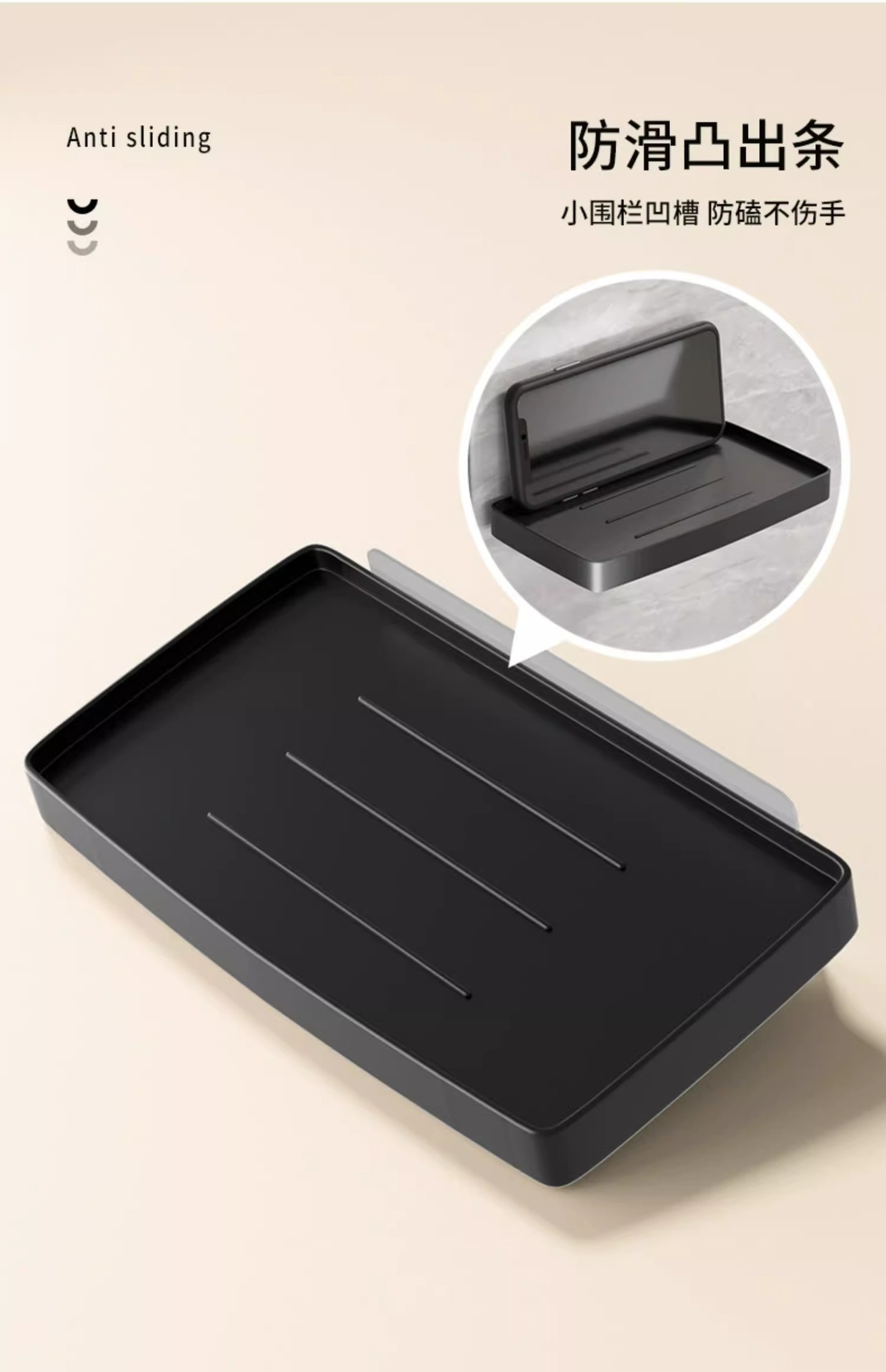 • [펀치 없음] 블랙 에지 전화 홀더 (네일 프리 스티커)