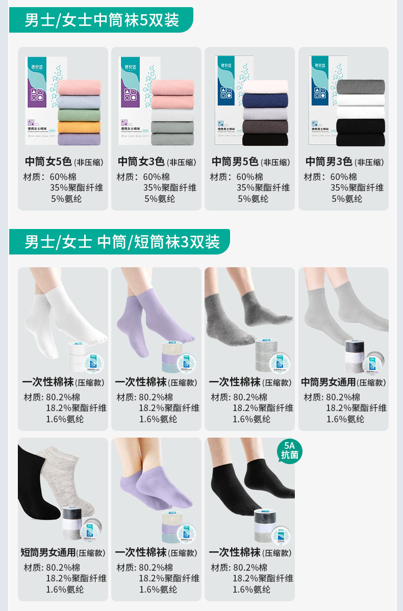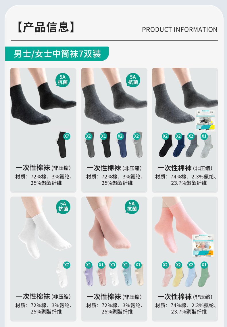 남성과 여성을 위한 여름 일회용 양말, 보편적인 일일 일회용 압축 휴대용 여행용 종아리 중간 양말, 출장, 탈취, 군사 훈련스토어 가기