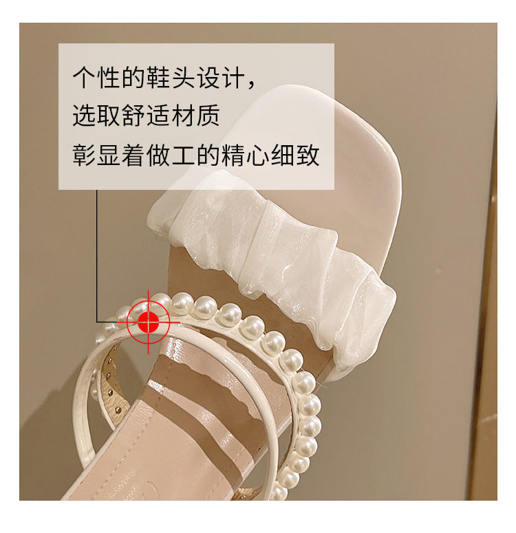 2024 년 여름 새 샌들 및 슬리퍼 여성용 미들 힐 두꺼운 힐 프랑스 올 매치 아우터웨어 요정 스타일 펄 투웨어 샌들스토어 가기