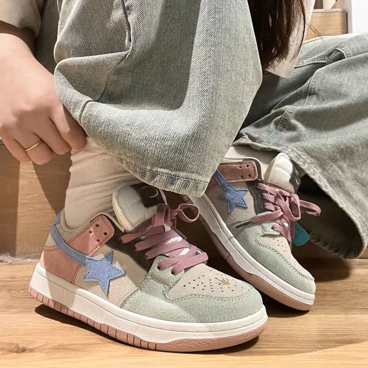 빈티지 틈새 디자인 스타 보드 신발 여성의 봄과 가을 스타 시즌 새로운 도착 올매치 홍콩 스타일 스포츠 두꺼운 바닥 흰색스토어 가기