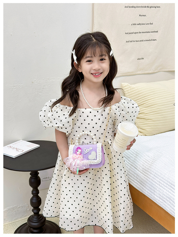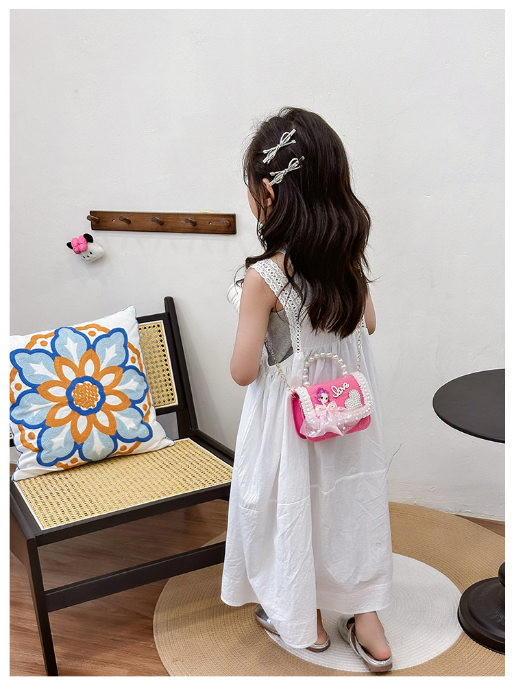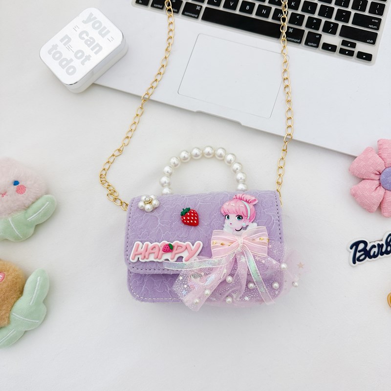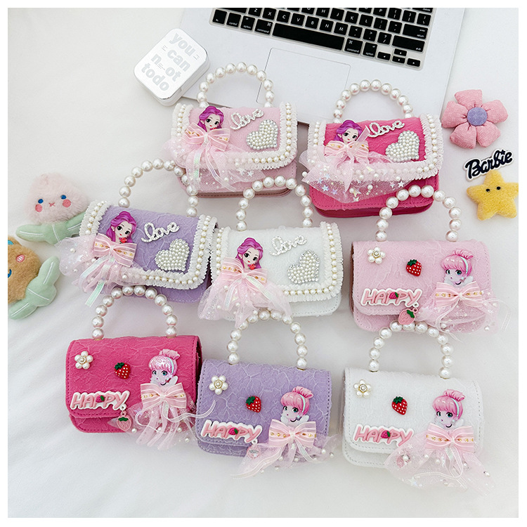 새로운 어린이 가방 작은 소녀의 활 진주 핸드백 패션 세련된 공주 어깨 크로스 바디 동전 지갑