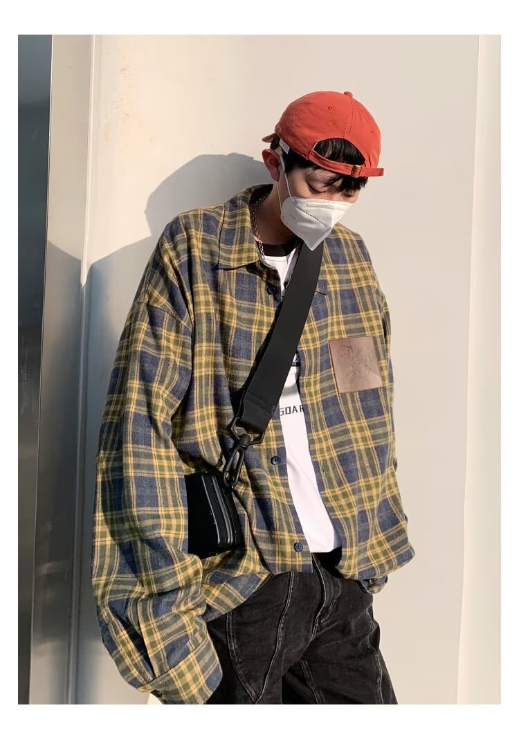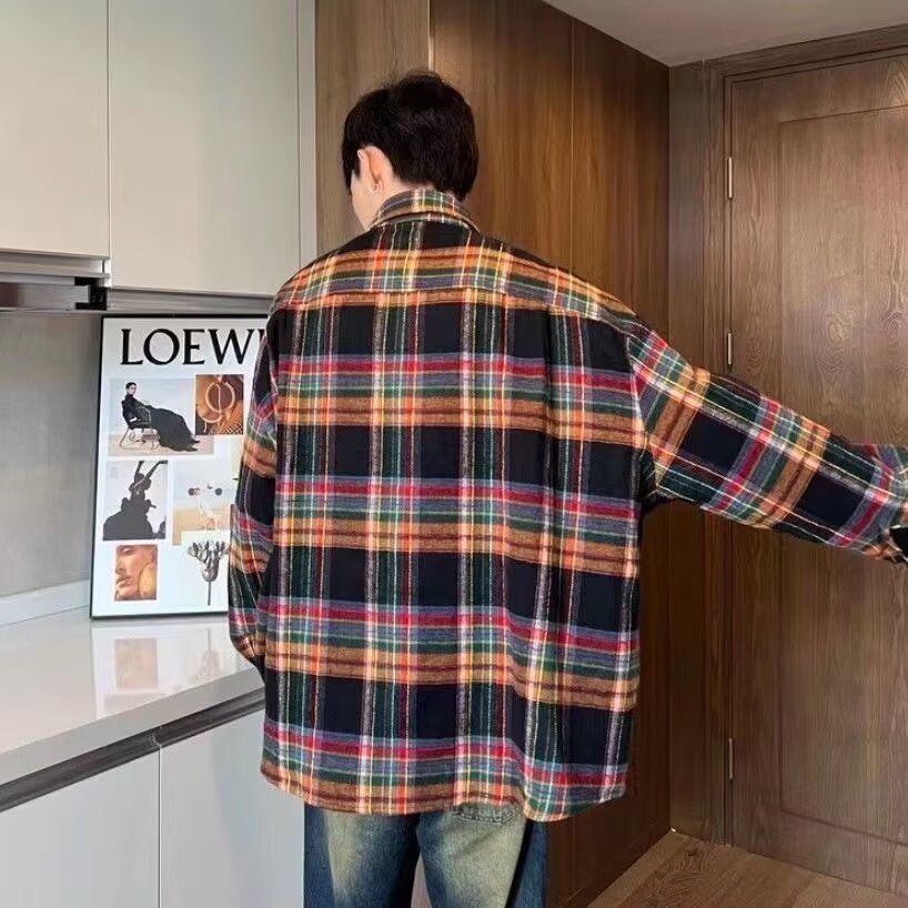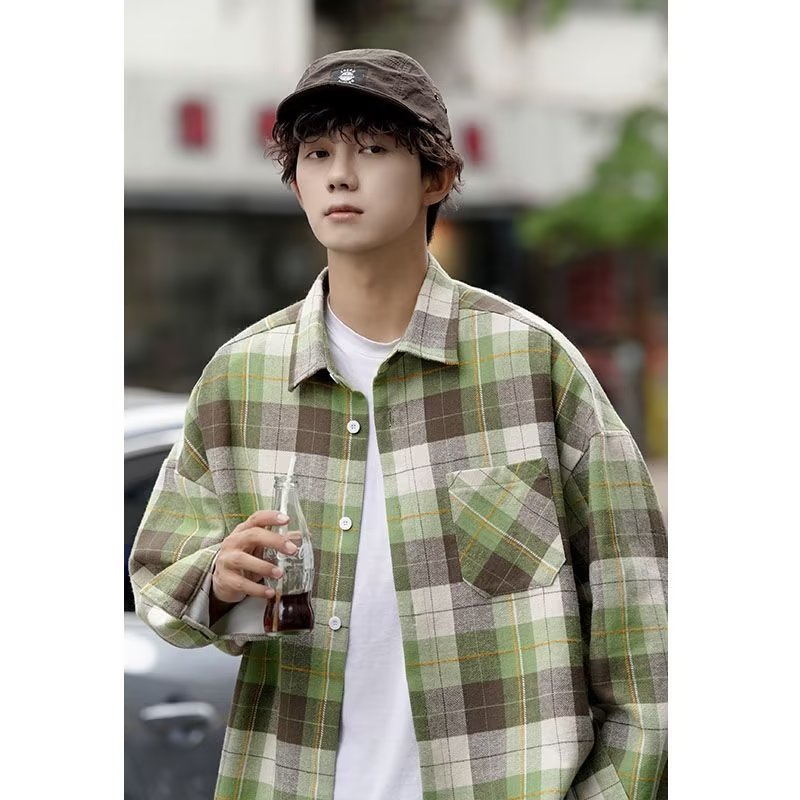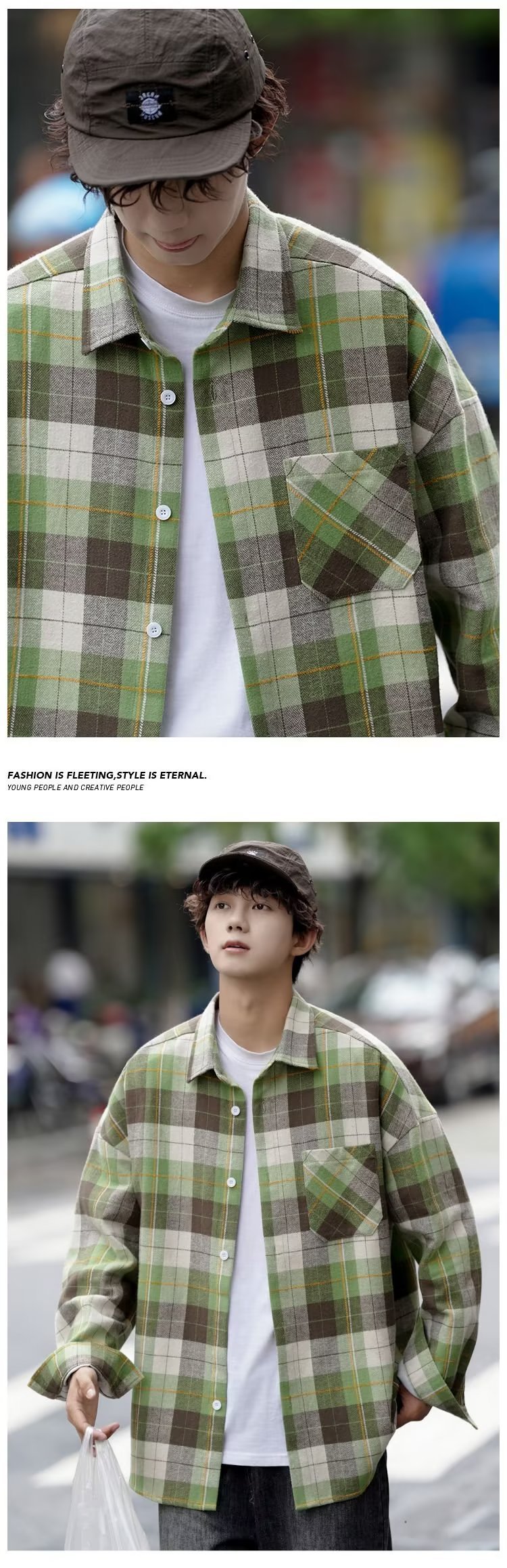 미국 봄, 가을 일본식 긴팔 체크 무늬 셔츠 남성용 한국 스타일 트렌디 인터넷 연예인 캐주얼 셔츠 재킷