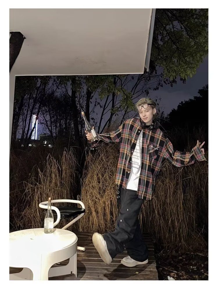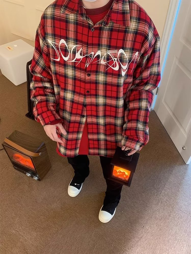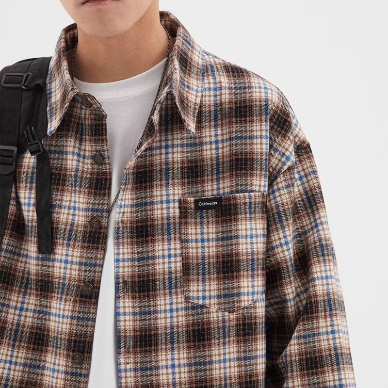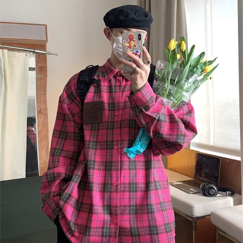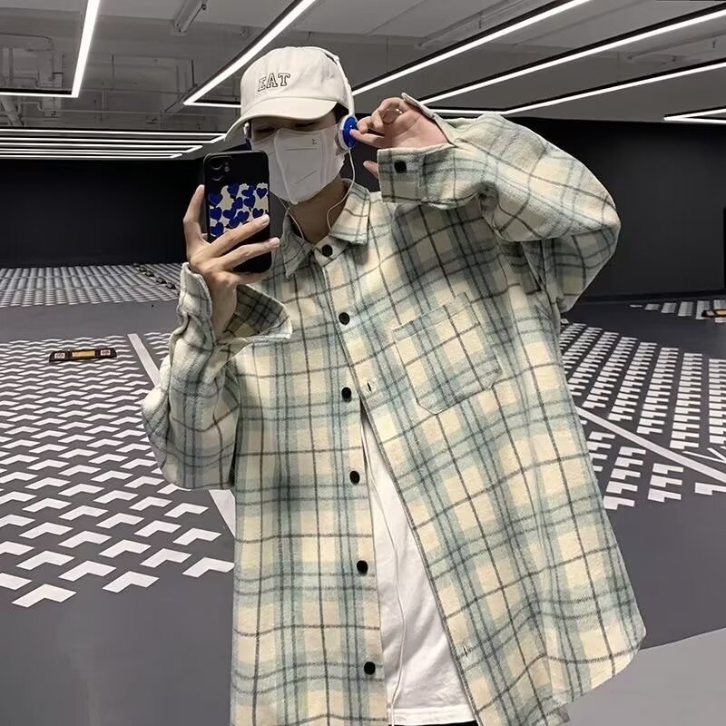 미국 봄, 가을 일본식 긴팔 체크 무늬 셔츠 남성용 한국 스타일 트렌디 인터넷 연예인 캐주얼 셔츠 재킷
