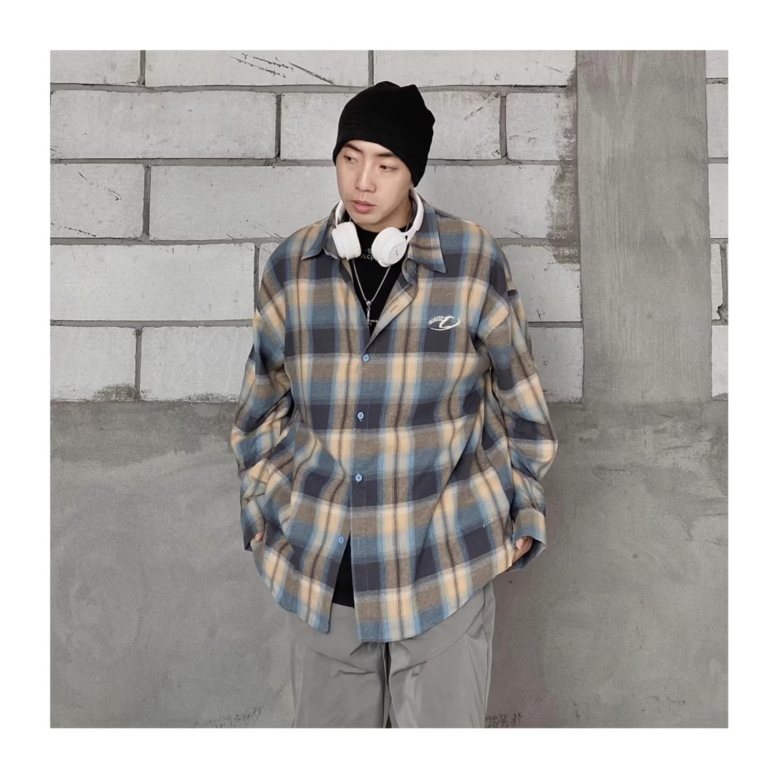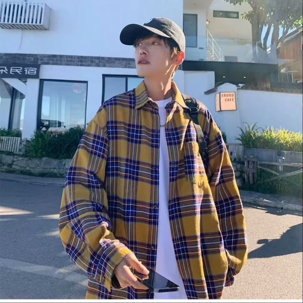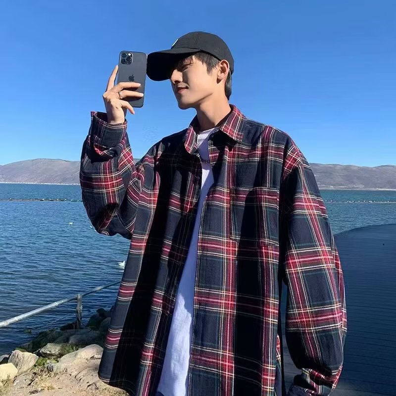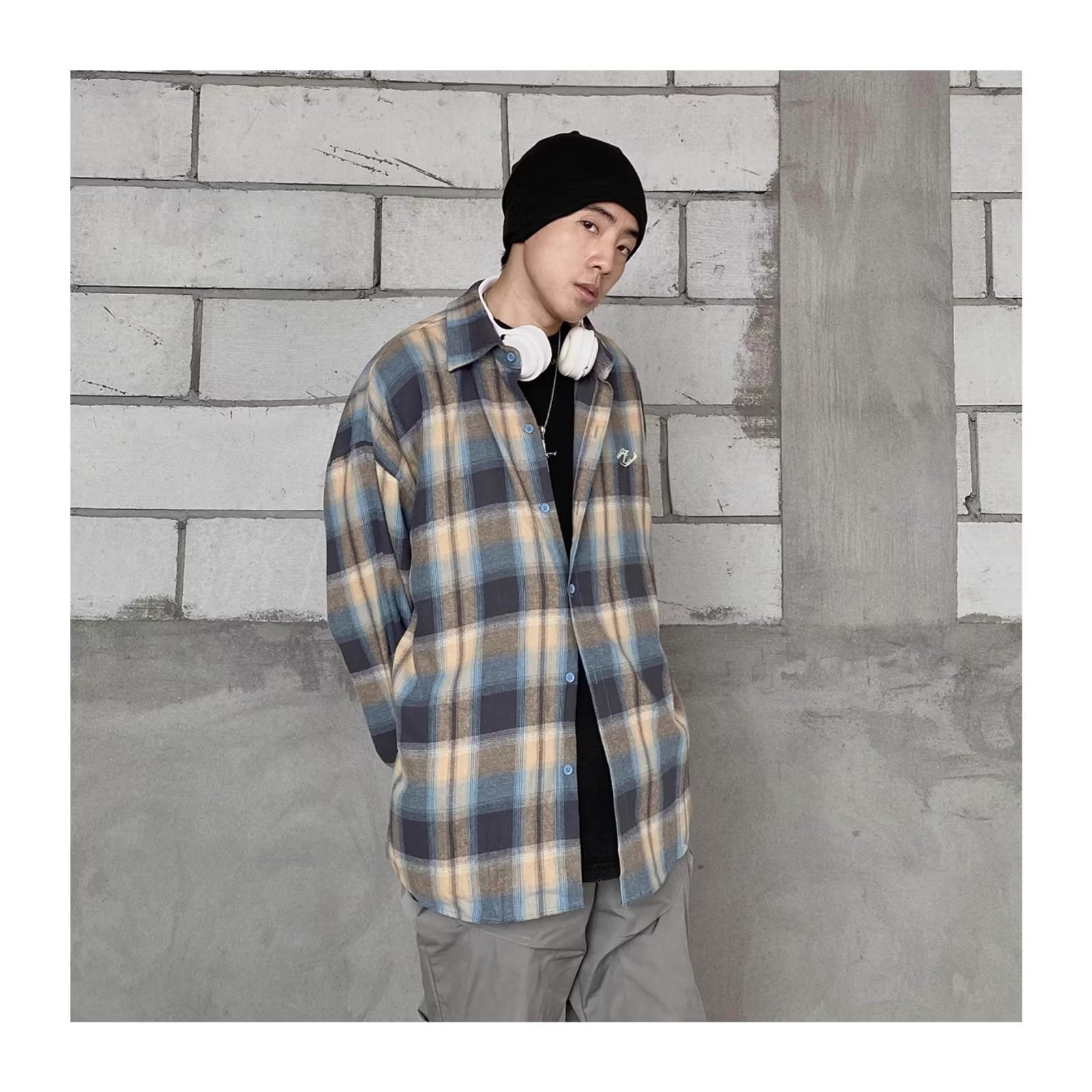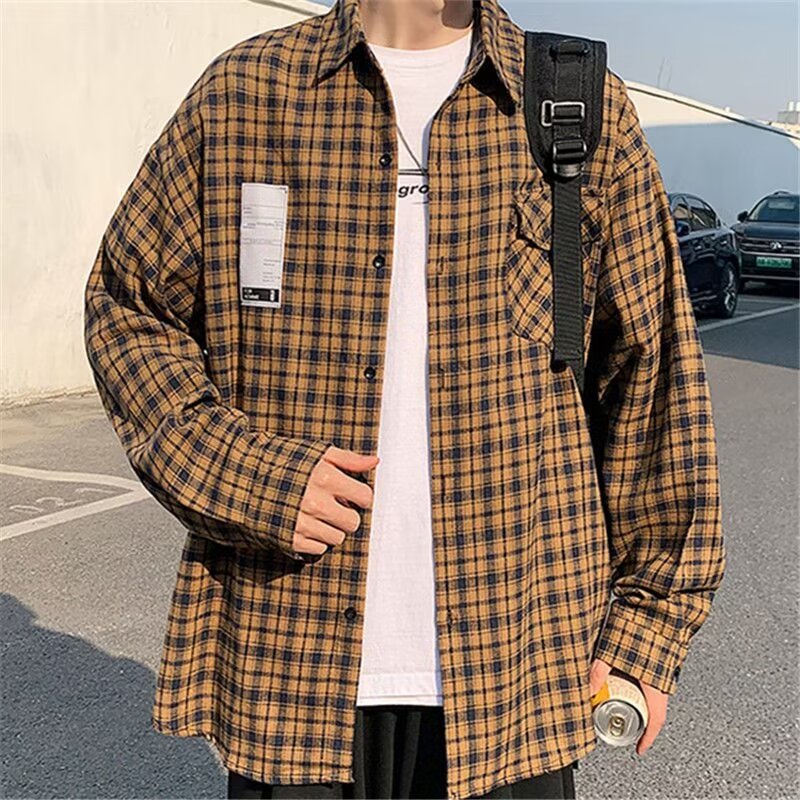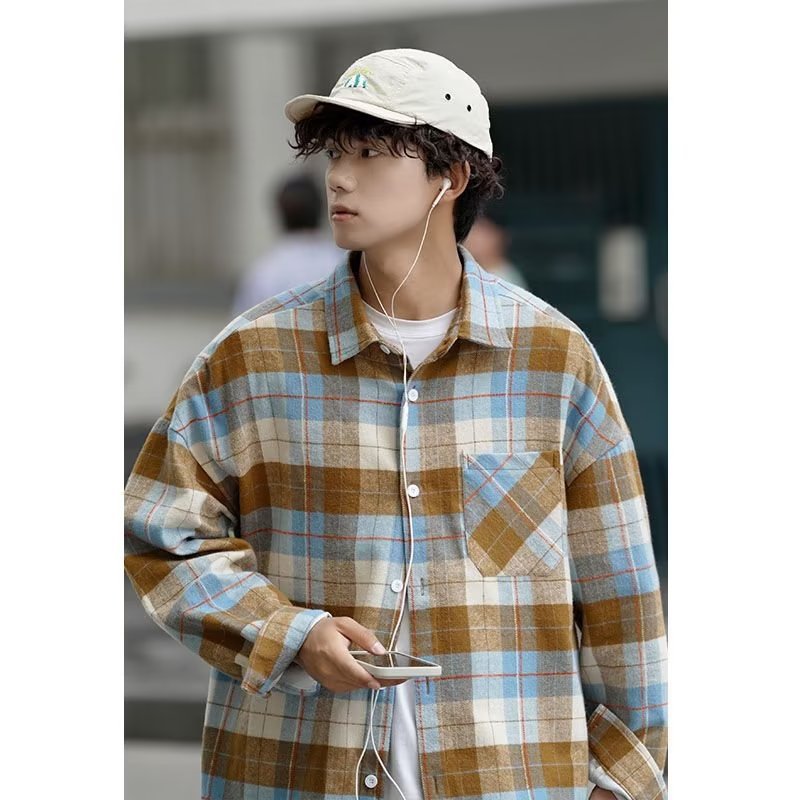 미국 봄, 가을 일본식 긴팔 체크 무늬 셔츠 남성용 한국 스타일 트렌디 인터넷 연예인 캐주얼 셔츠 재킷스토어 가기