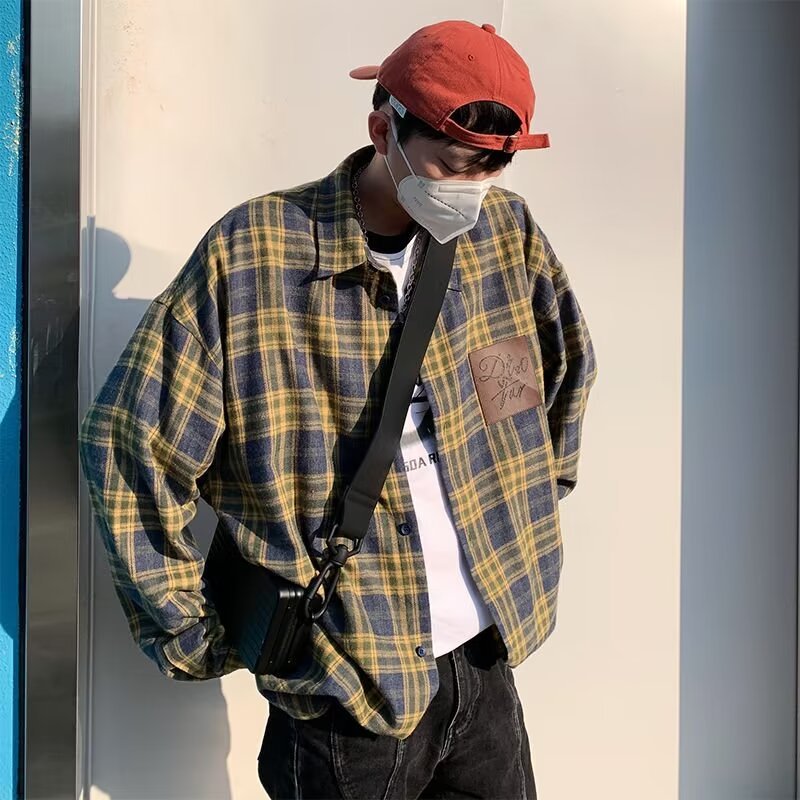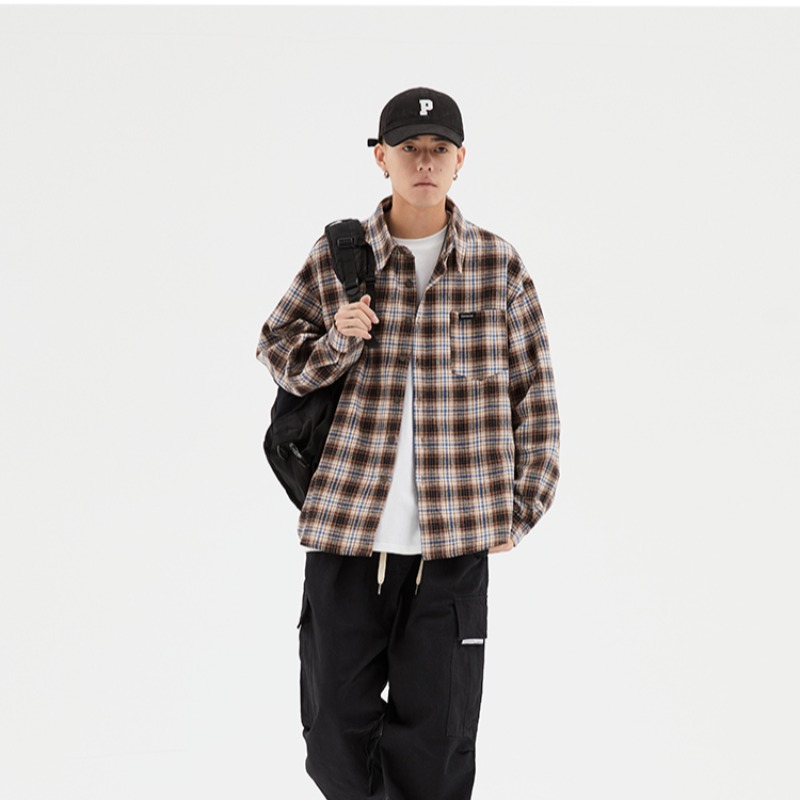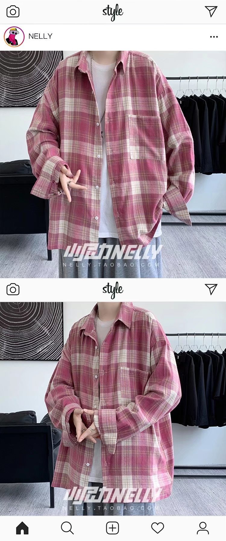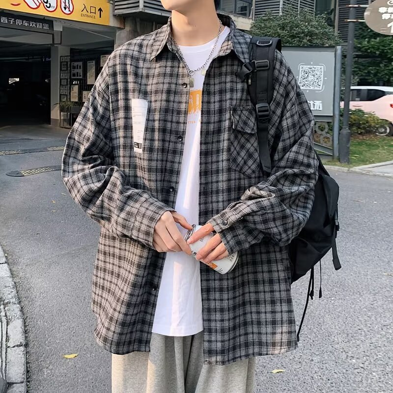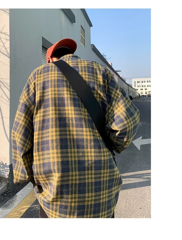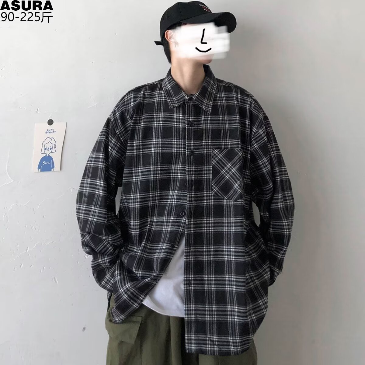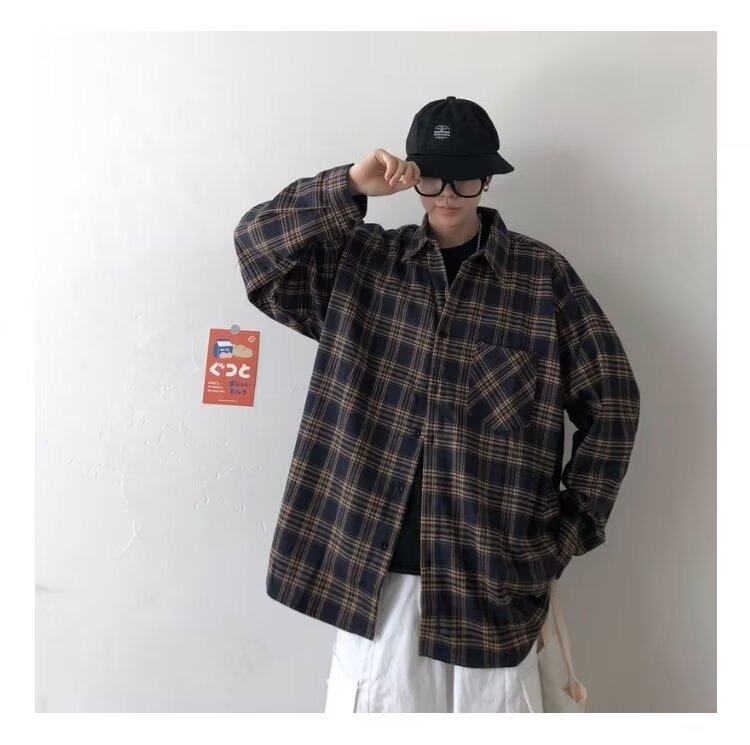 미국 봄, 가을 일본식 긴팔 체크 무늬 셔츠 남성용 한국 스타일 트렌디 인터넷 연예인 캐주얼 셔츠 재킷스토어 가기